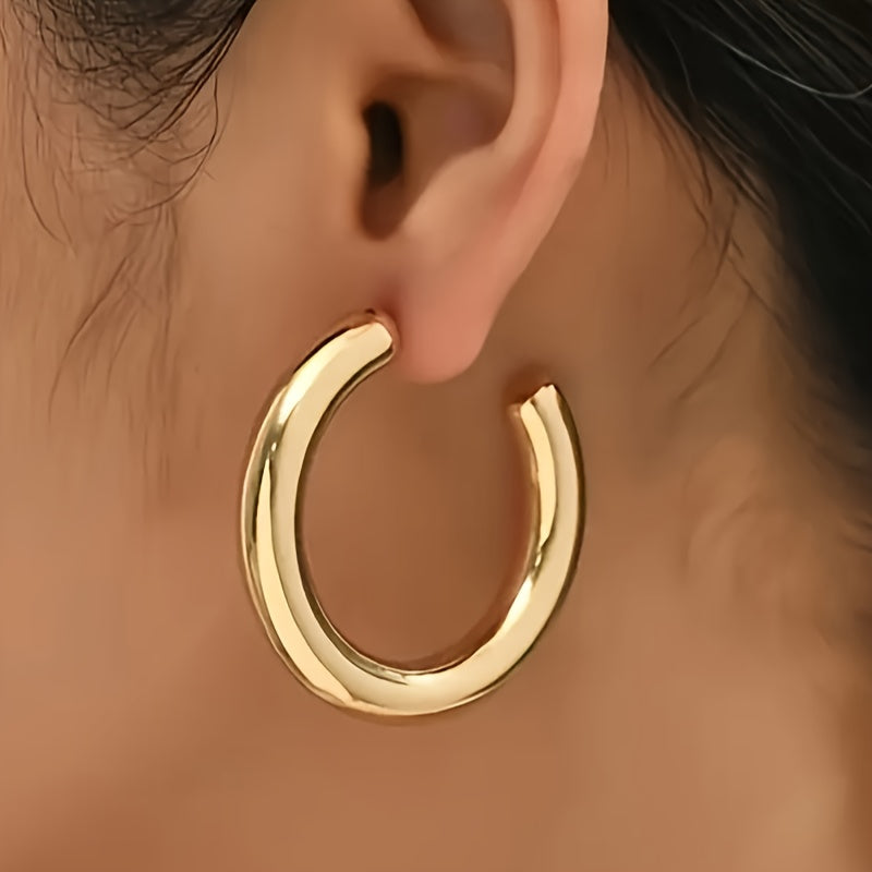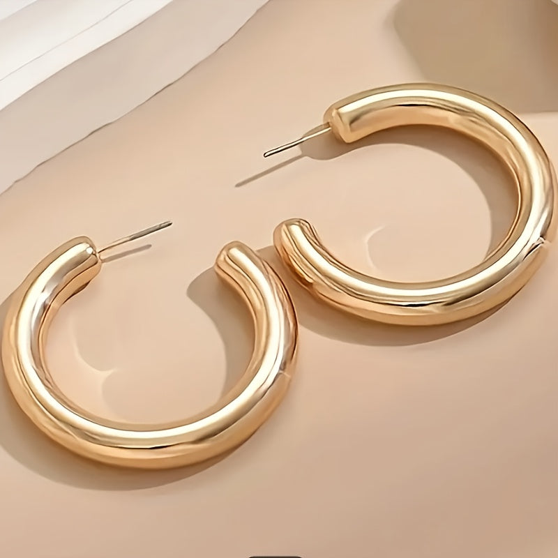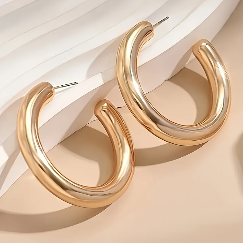 These sleek C hoop earrings are made of high-quality 316 stainless steel with a golden tone finish. They are hypoallergenic and perfect for everyday wear.