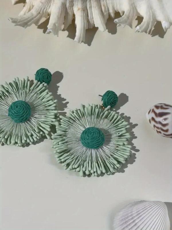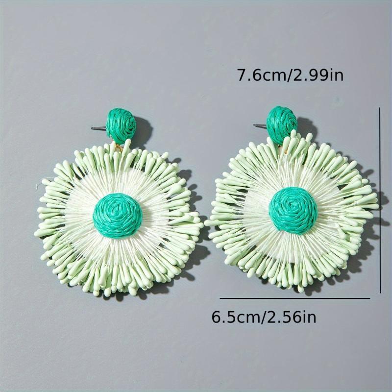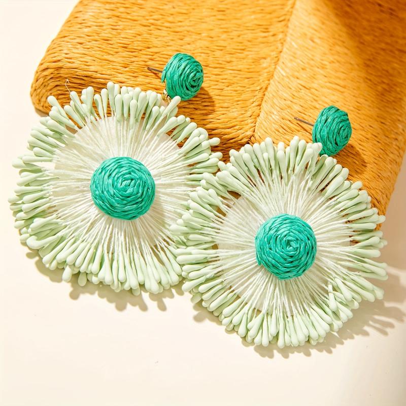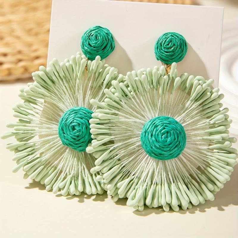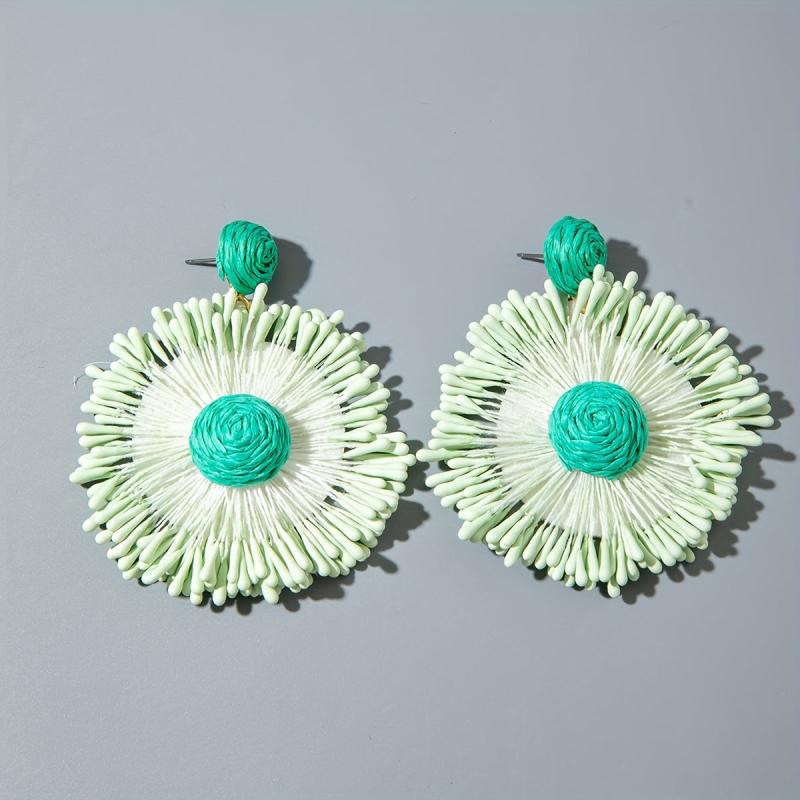 These handwoven raffia grass earrings are perfect for adding a playful contrast to your spring and summer party outfits. They make a great gift for women and feature a textured design.