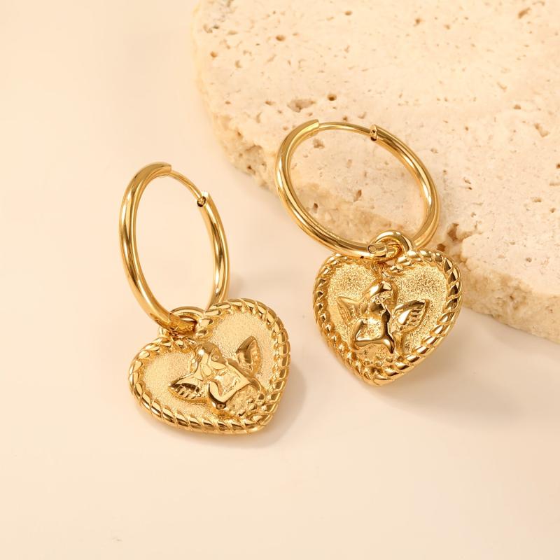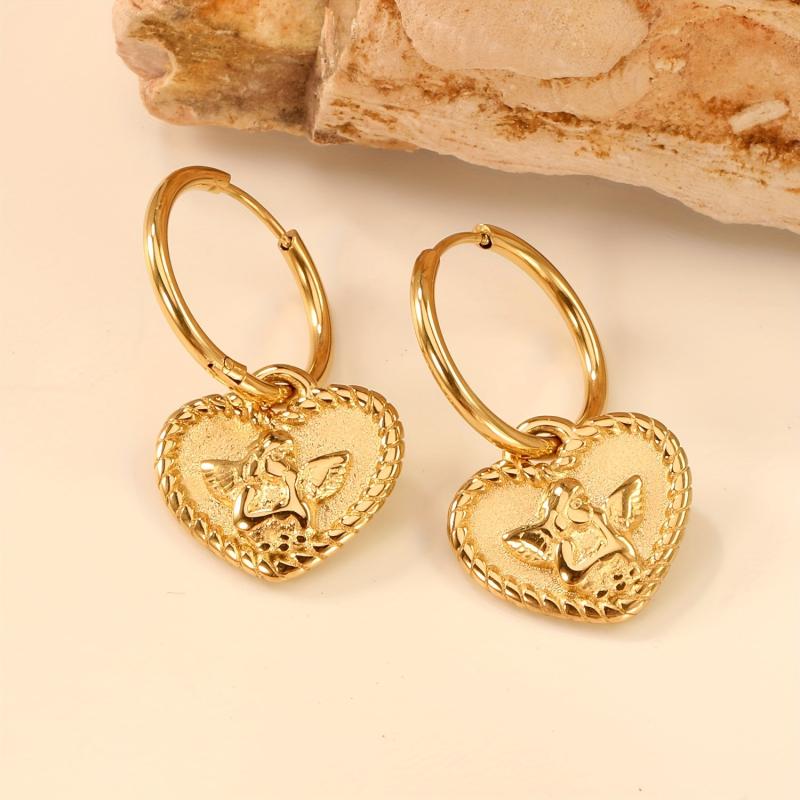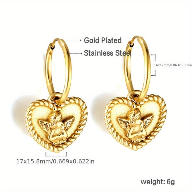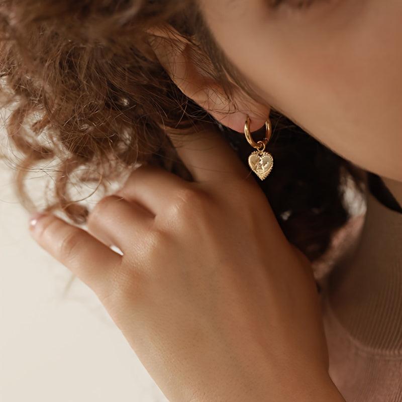 Heart Dangle Earrings - 18K Plated Stainless Steel - Party-Ready Accessory