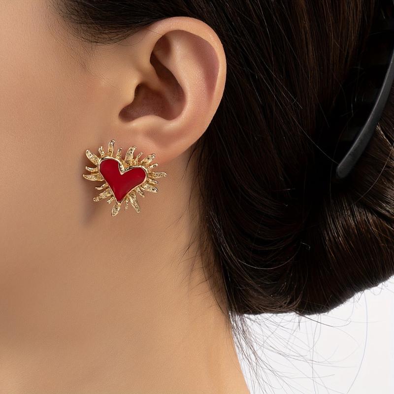 These heart shaped alloy stud earrings are a must-have accessory for women. The elegant design makes them perfect for daily wear and vacations.