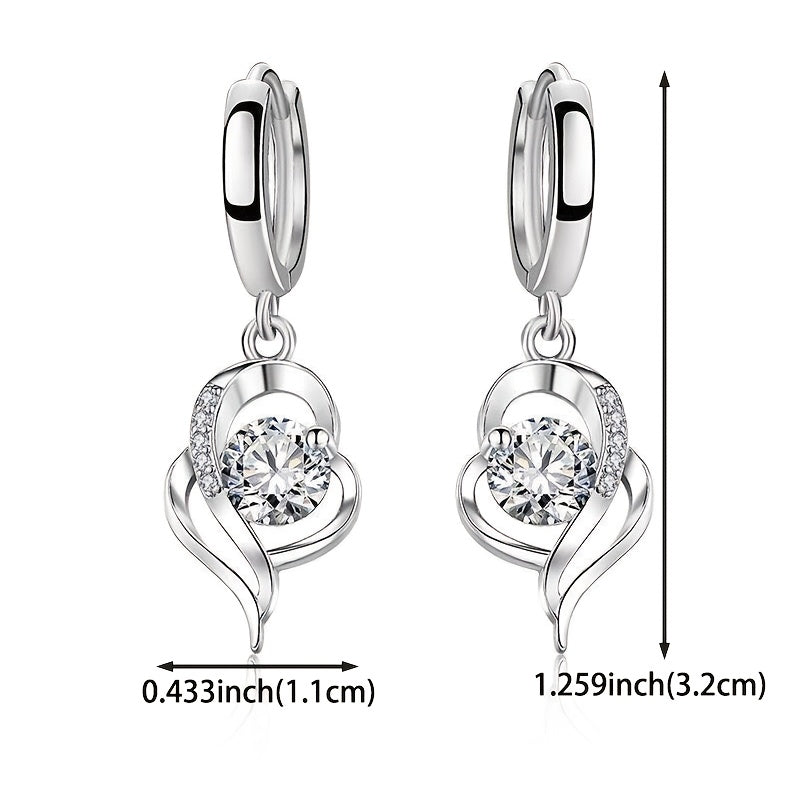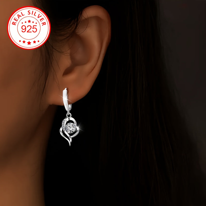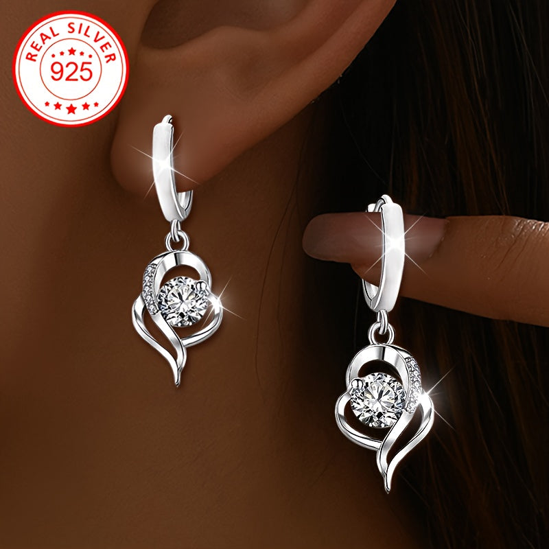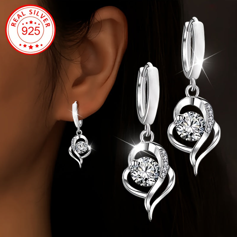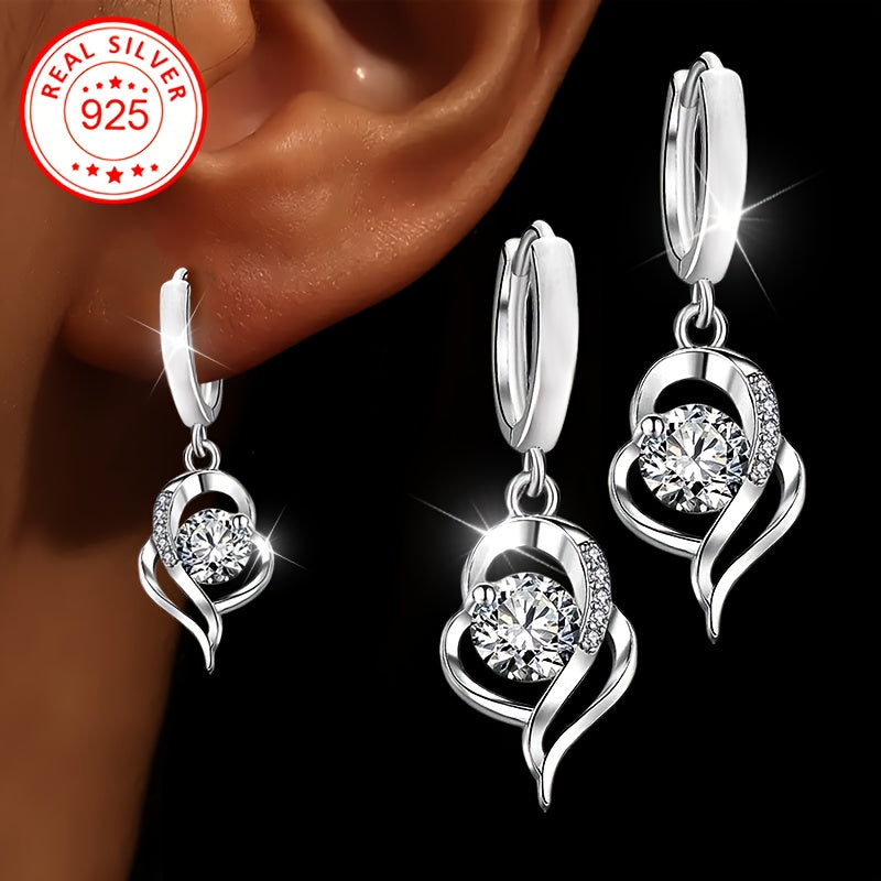 Elegant women's earrings with geometric heart-shaped cubic zirconia in a teardrop design. Includes matching stud earrings in S925 silver.