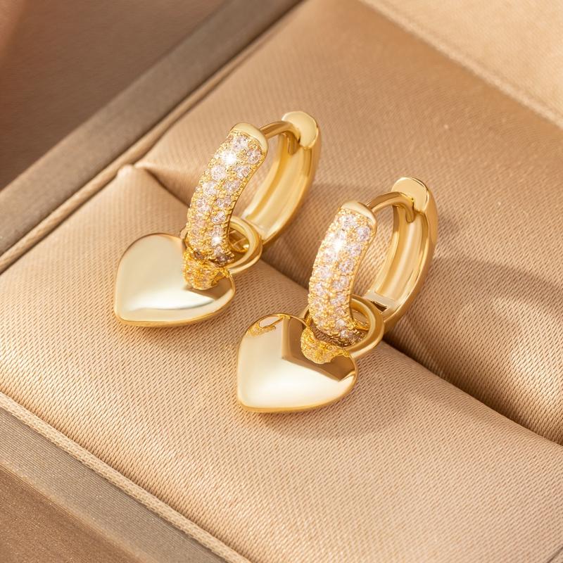 Stylish heart shaped earrings featuring sparkling cubic zirconia, perfect for casual wear or gifting.