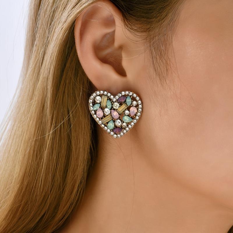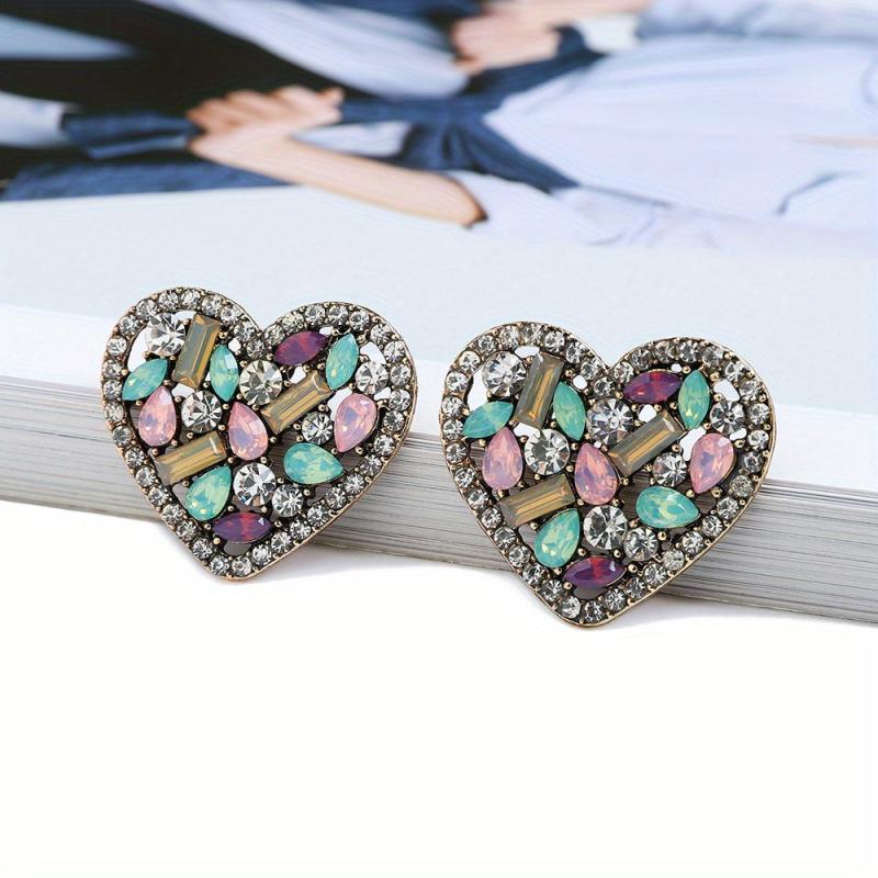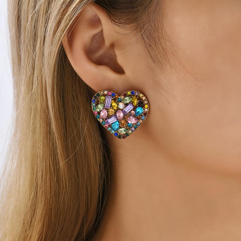 Heart Stud Earrings Sparkling Rhinestone Jewelry Romantic Playful for Women