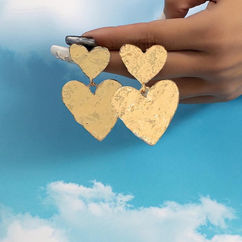 These Double Heartbeat Dangle Earrings are perfect for a casual date or night out. Made of Zinc Alloy, they feature a heart-shaped design that adds a touch of style to any outfit.