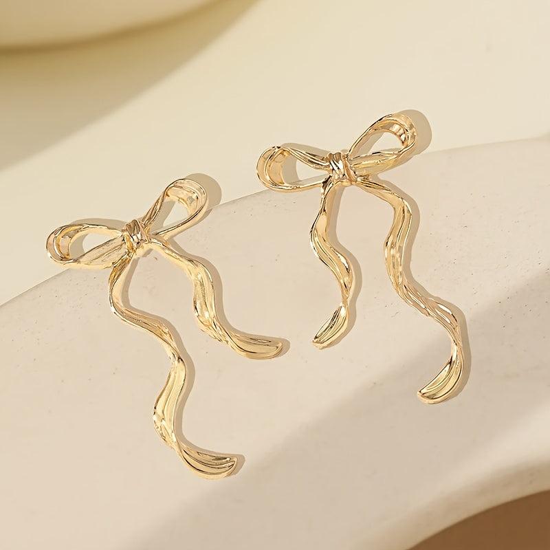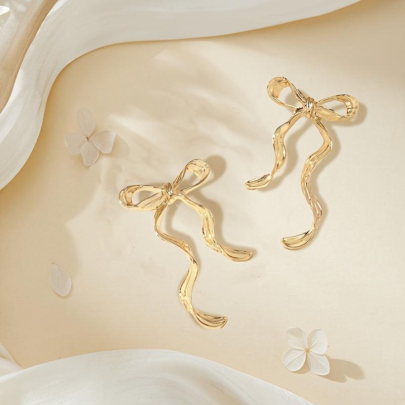 Enhance your style with this set of classic irregular textured hollow bow earrings. Perfect for any occasion.