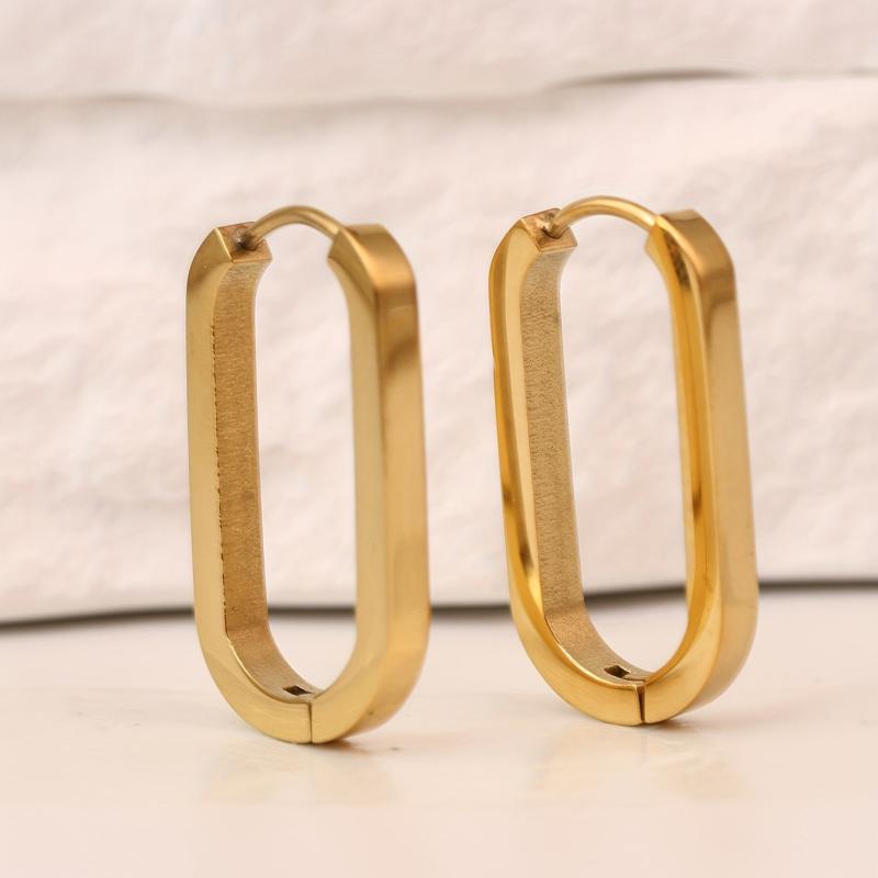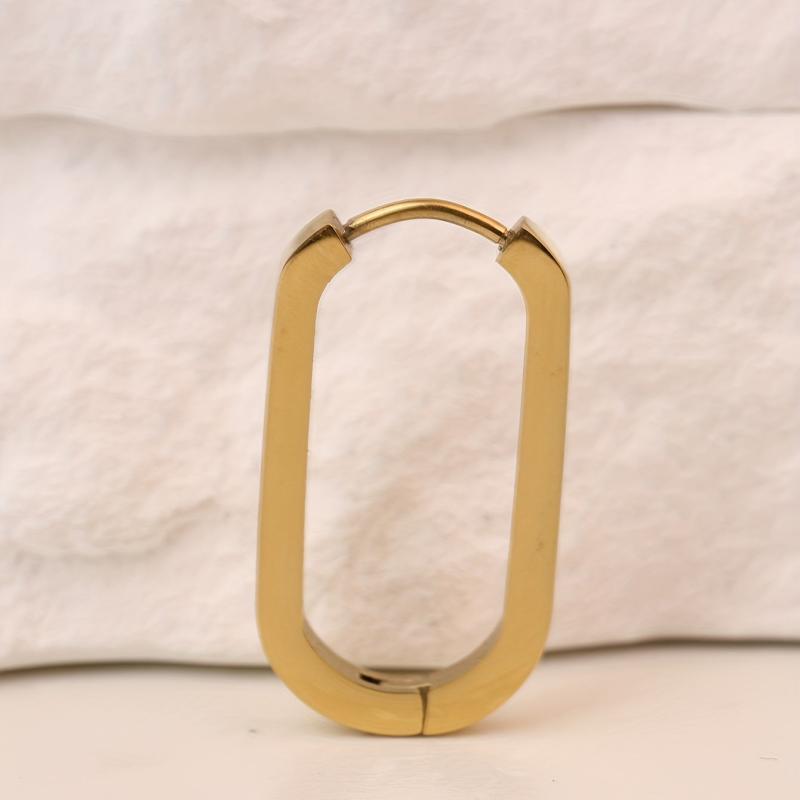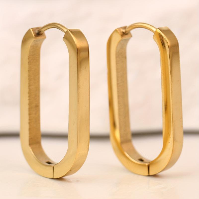 These U-shaped hoop earrings are made of hypoallergenic stainless steel, perfect for those with sensitive ears. The golden color adds a touch of elegance to any outfit.