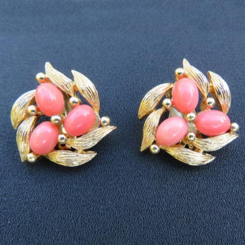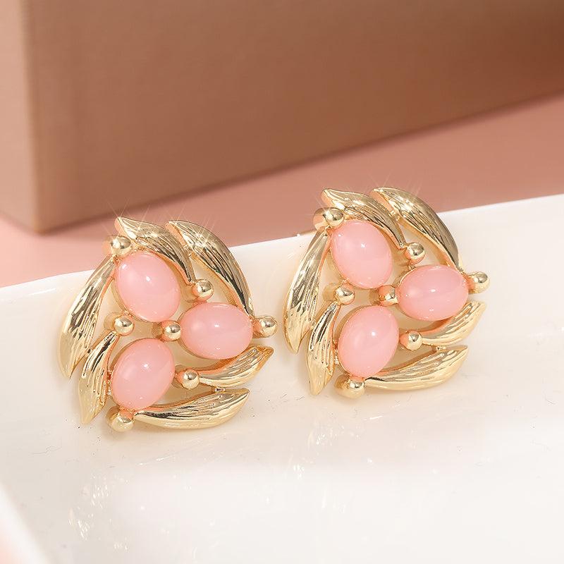 These elegant stud earrings feature intricate leaf design with pink gemstones. Perfect for weddings, Mother's Day, and year-round jewelry.