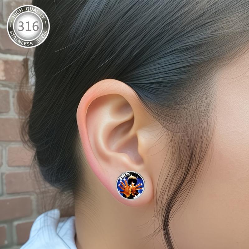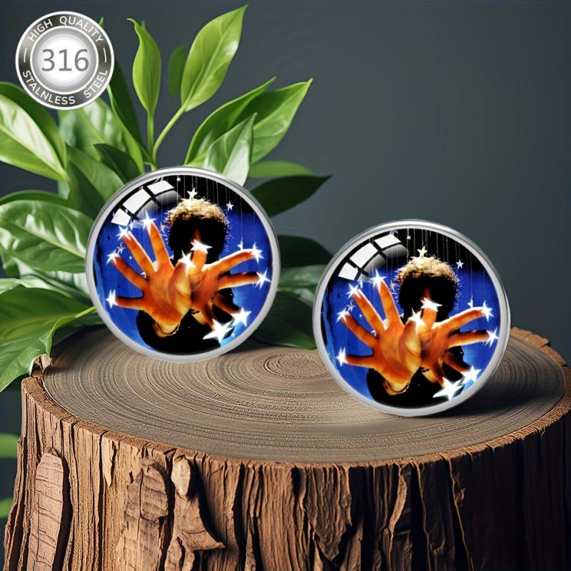 These fashionable earrings are perfect for men and women to wear at banquets and other events. Made from 316 stainless steel to ensure they are anti-allergic. The convex glass inlay adds a magical touch to the design.