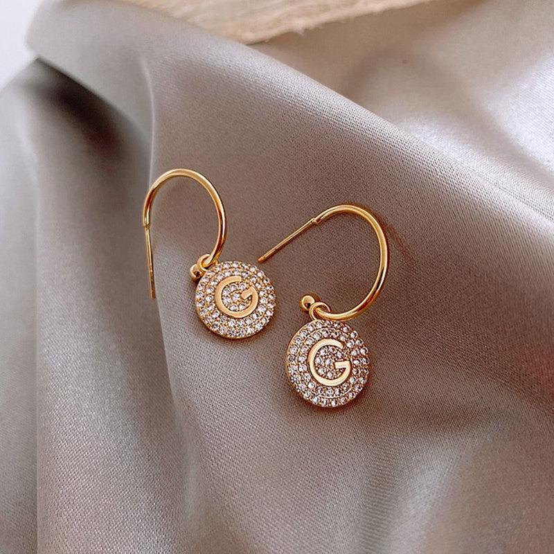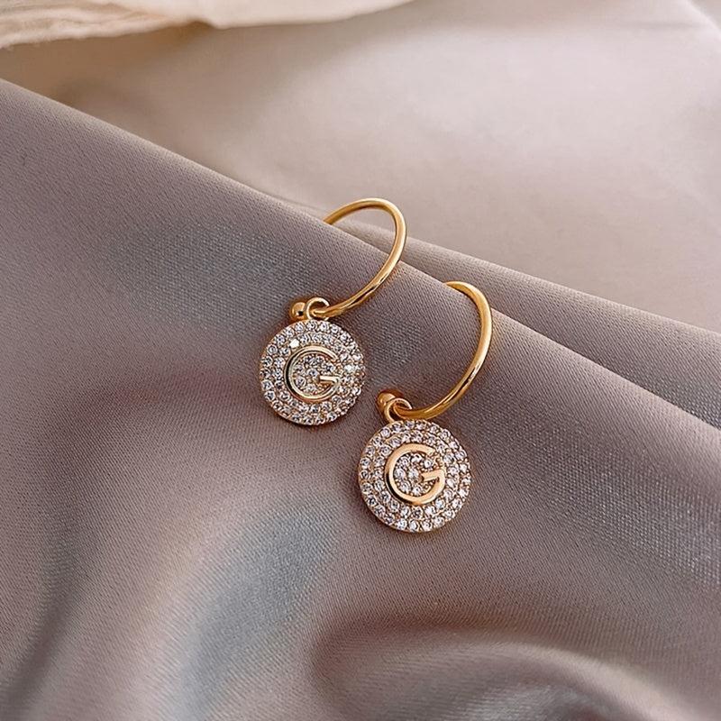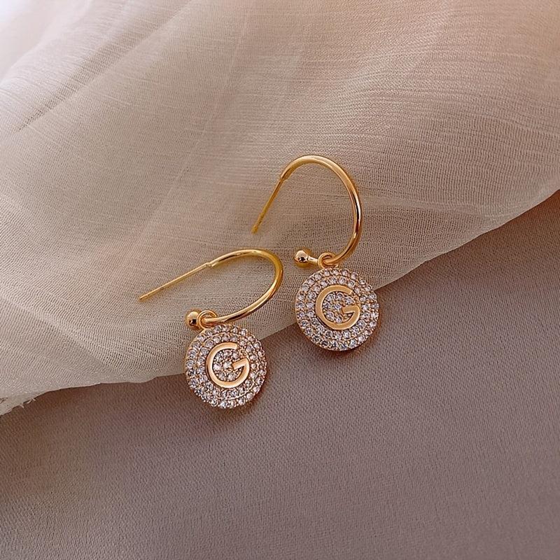 Add a touch of modern elegance with these mini letter G rhinestone drop earrings. Perfect as a gift for a special woman in your life.