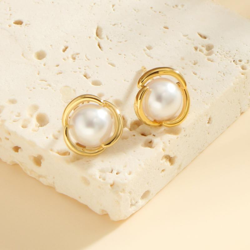 These stylish and minimalist stud earrings feature faux pearls that are hypoallergenic, making them suitable for everyday wear.