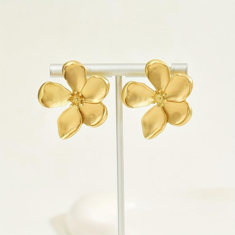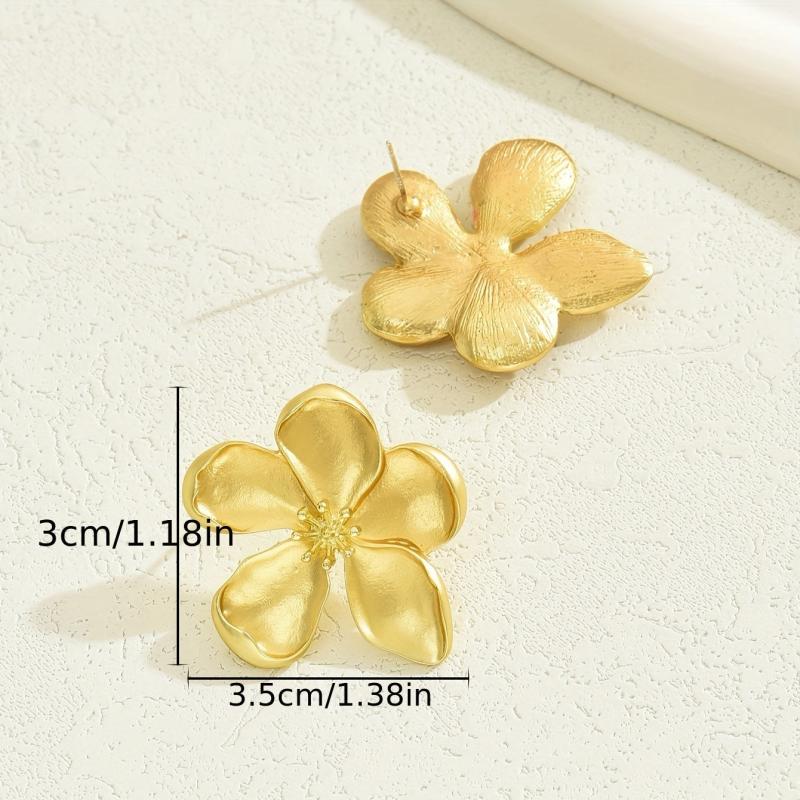These flower earrings are made of 14k gold-plated zinc alloy with stainless steel ear needles. Perfect for daily wear or vacation style, suitable for all seasons.