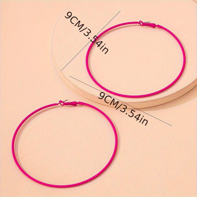 Add a pop of color to your outfit with these vibrant pink hoop earrings. Lightweight and durable, they are perfect for year-round wear. The versatile style is suitable for casual or dressier occasions.