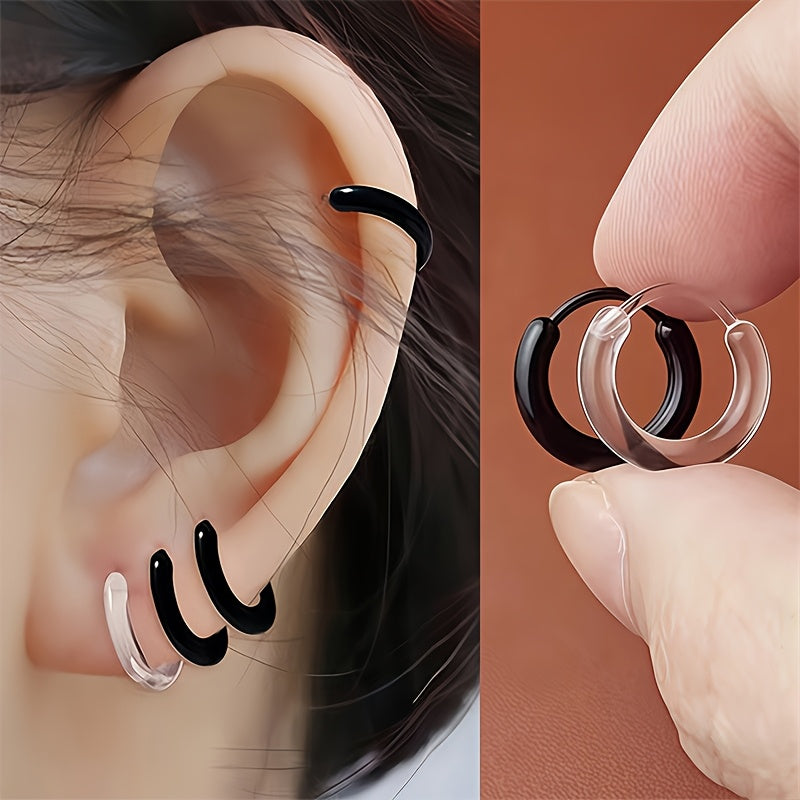 Minimalist Resin Hoop Earrings & Clear Invisible Ear Studs Set