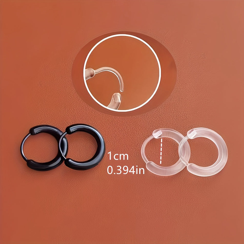 • Includes 2 minimalist resin hoop earrings and clear invisible ear studs
