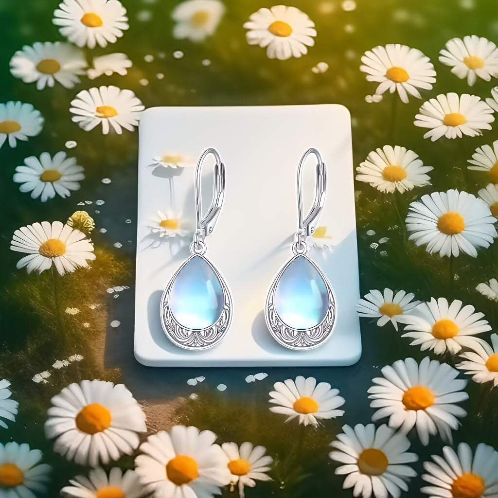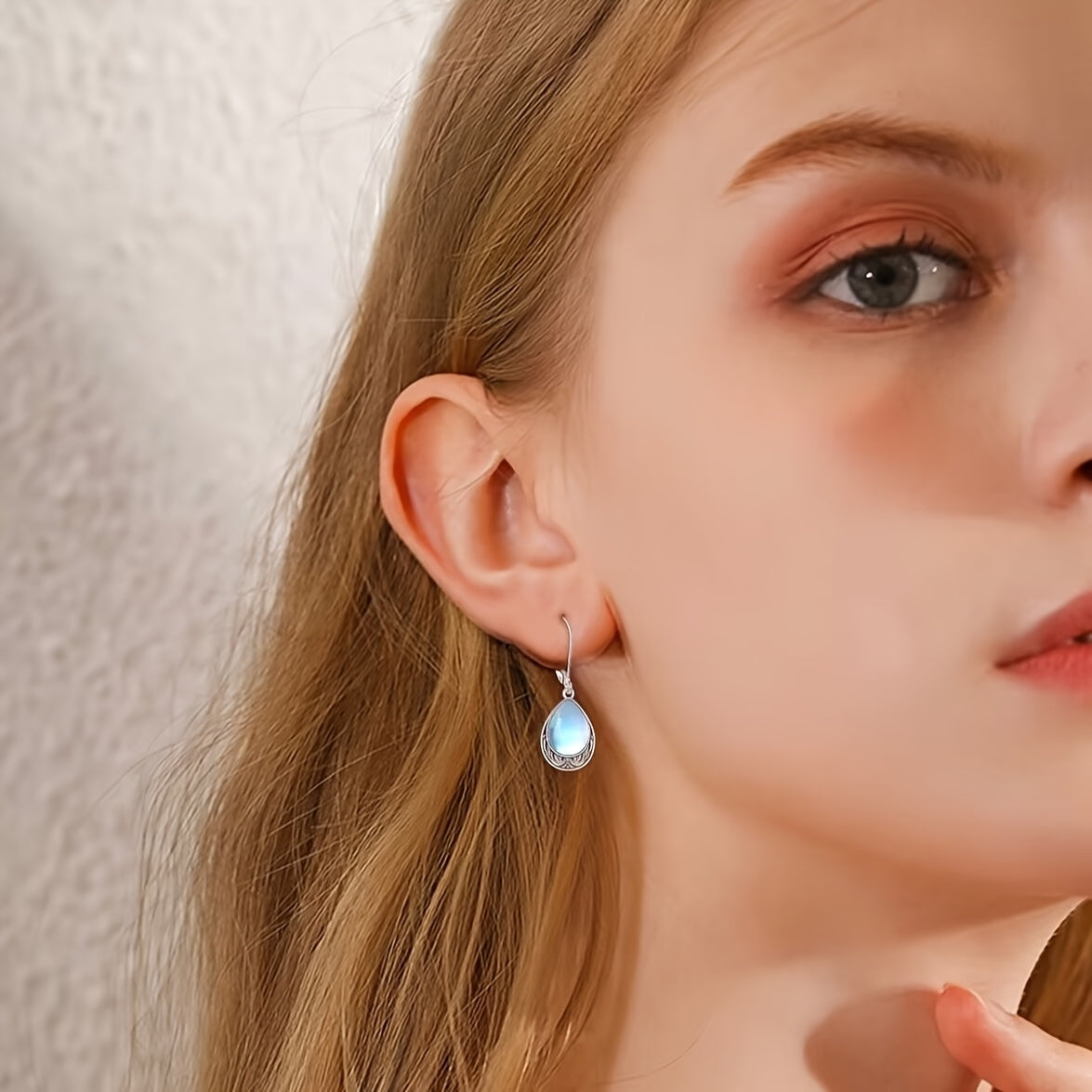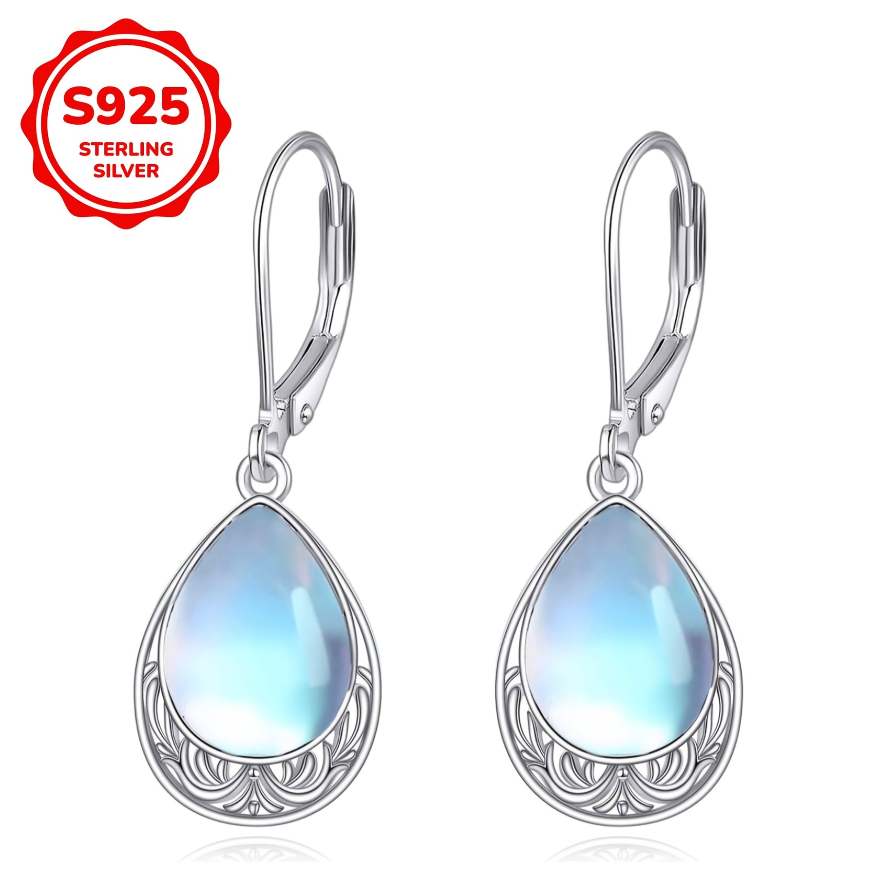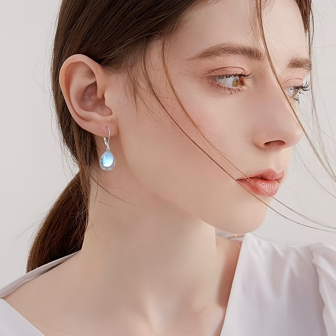 These elegant dangle earrings feature teardrop moonstones set in S925 silver. A versatile gift for your girlfriend, these lightweight earrings are hypoallergenic and perfect for everyday wear.