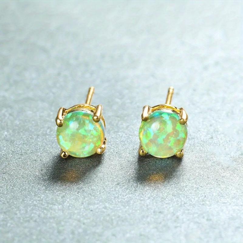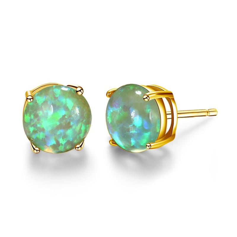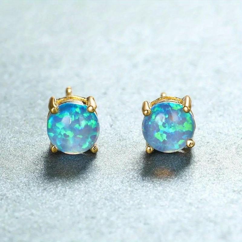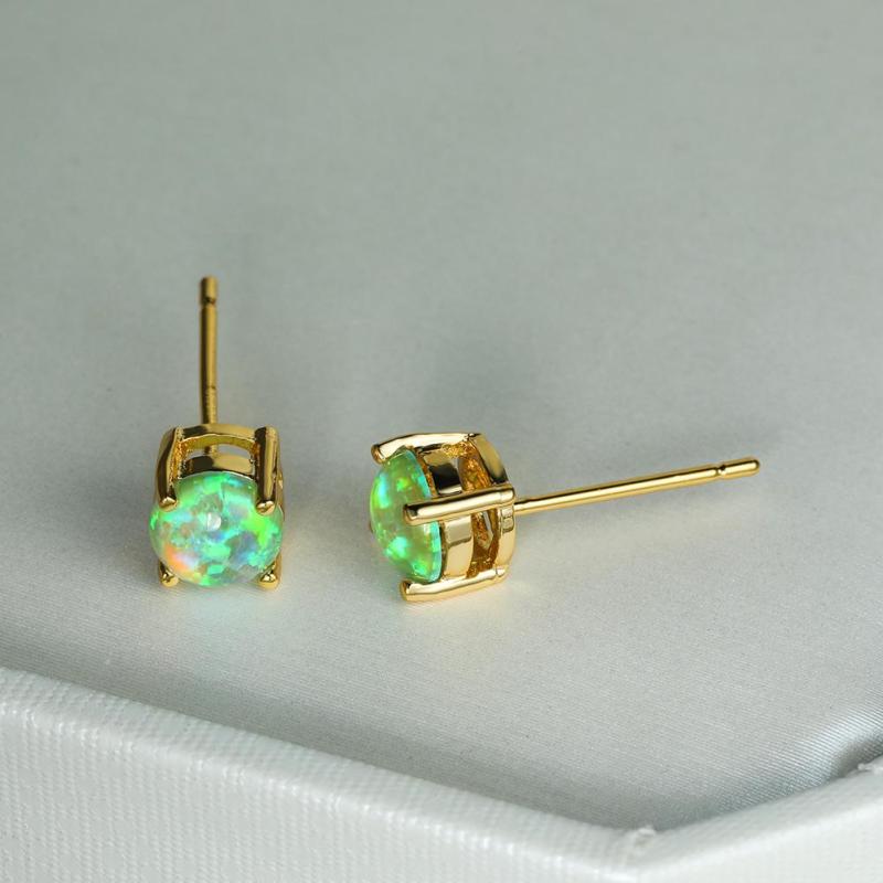 These oval shaped synthetic opal stud earrings are elegantly adorned with golden plating, making them a perfect accessory for women of all ages.