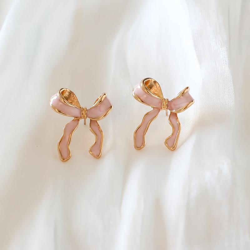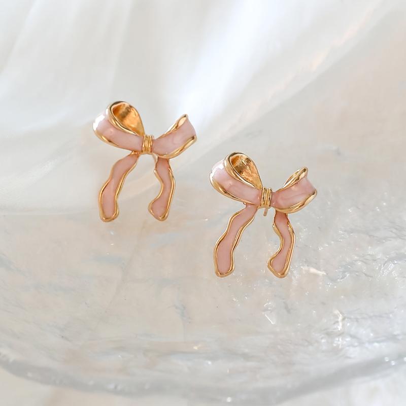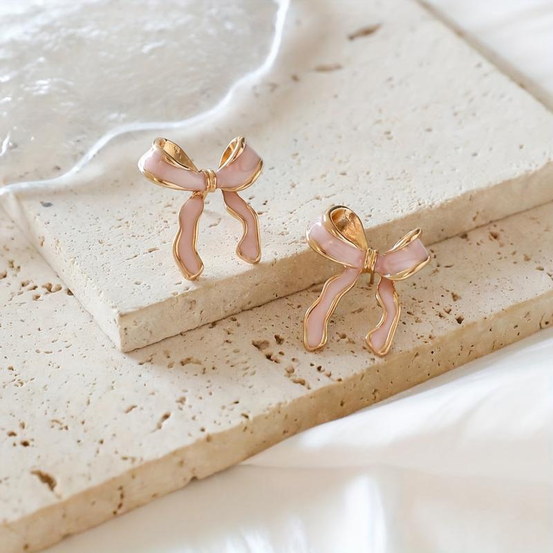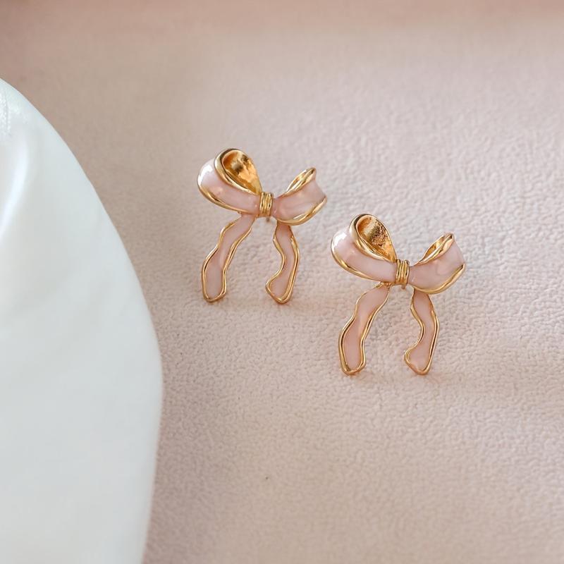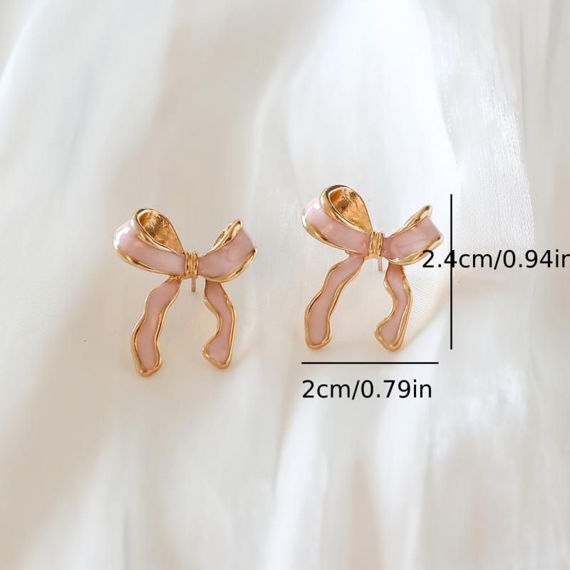 These stylish pink bow stud earrings are perfect for adding a touch of charm to your casual attire or party outfits. Crafted from sexy alloy with a drop finish, they are sure to make a statement.