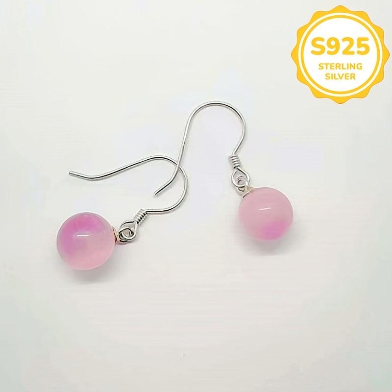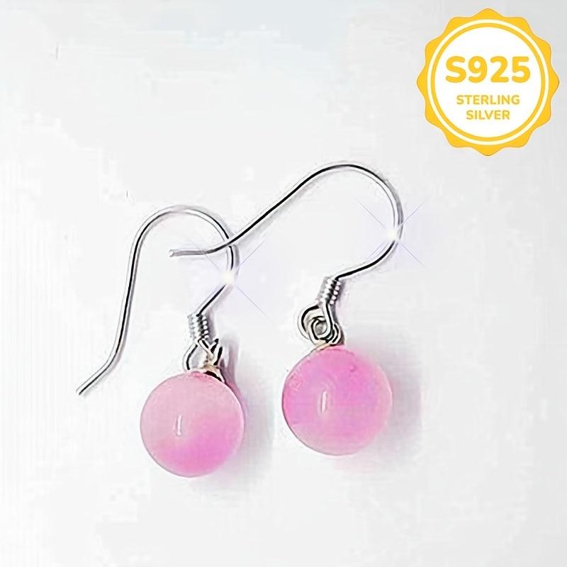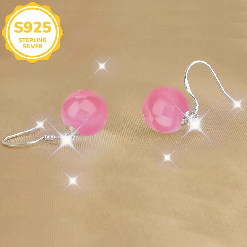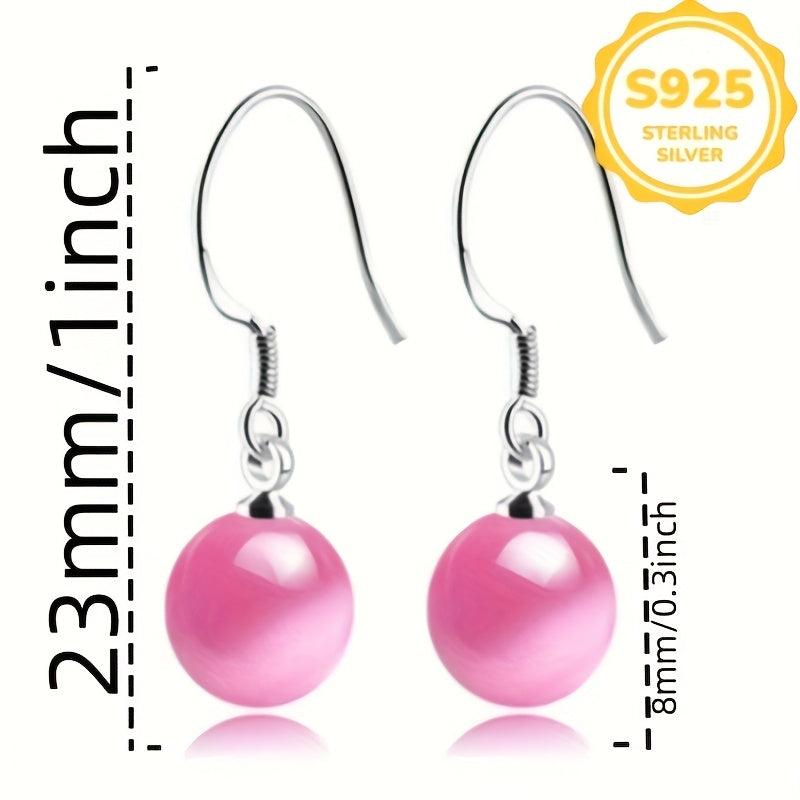 These earrings feature a pair of anti-allergic S925 earrings with pink cat's eye stones. They are sophisticated gift accessories that add a touch of elegance to any outfit.