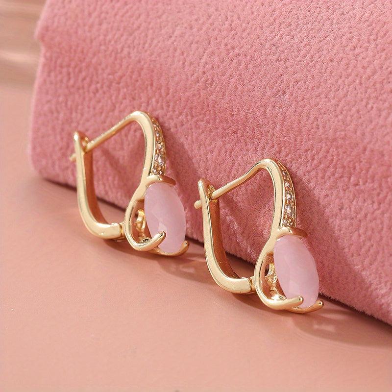 Enhance your look with these elegant Pink Opal Earrings featuring sparkling accents. Perfect for bridal, engagement, wedding, and holiday occasions.