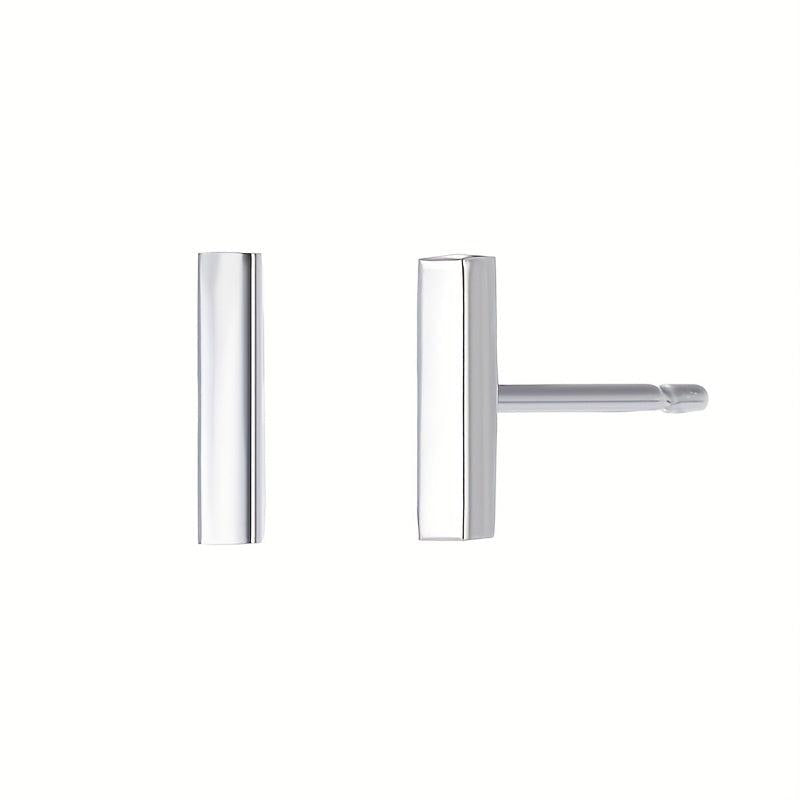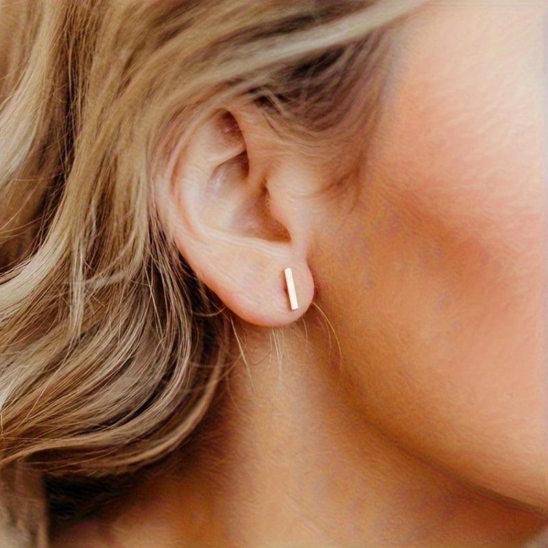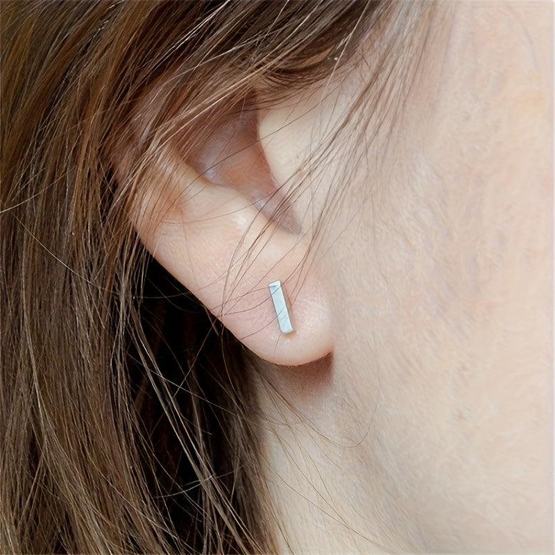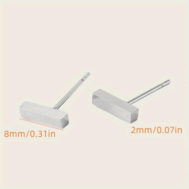 These stainless steel stud earrings feature a punk geometric design with horizontal stripes, making them perfect for daily wear or as a gift. They are hypoallergenic and made of 316 stainless steel.