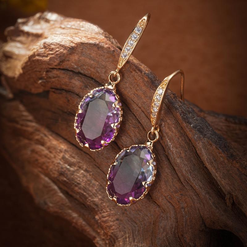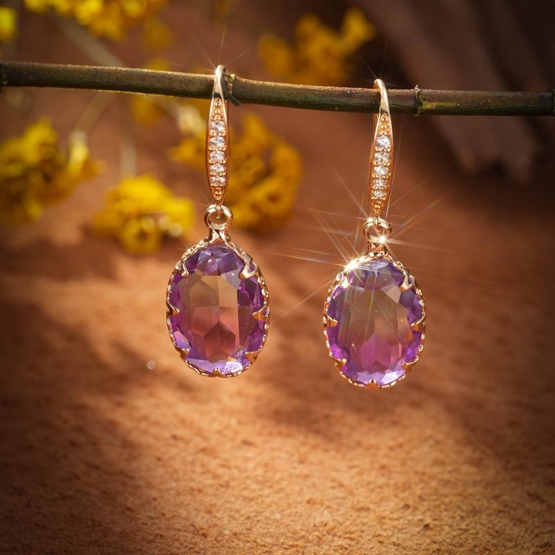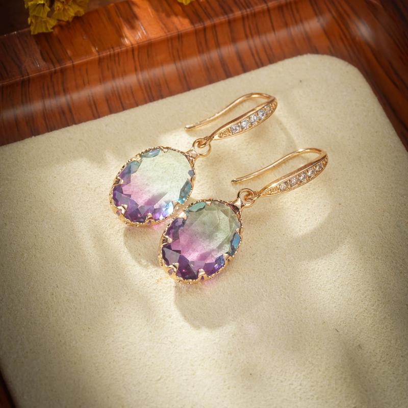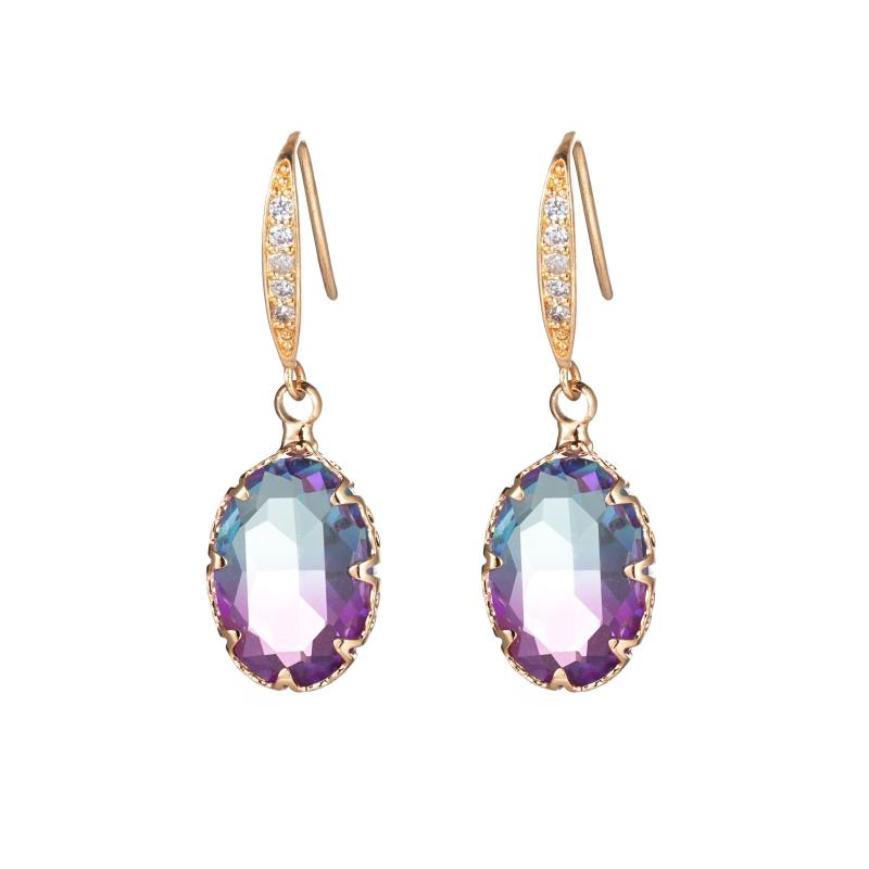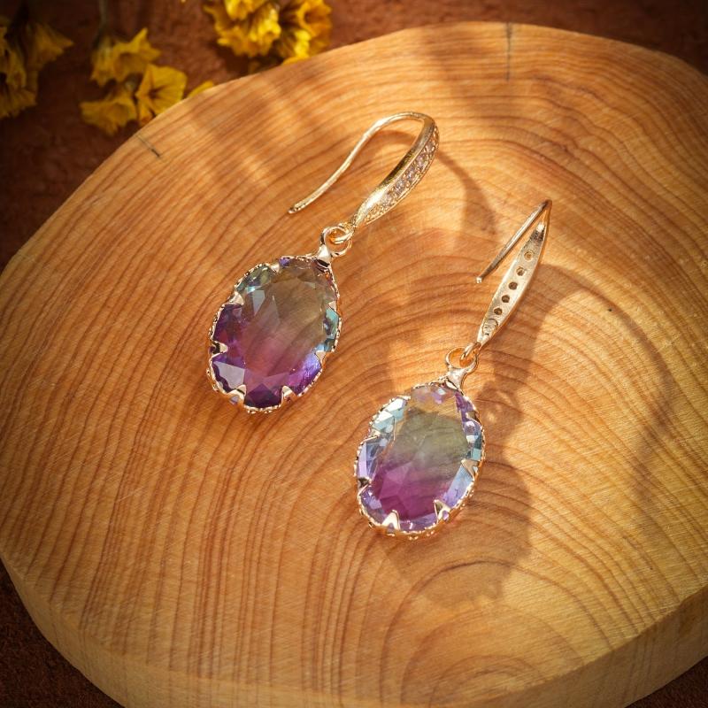 Add a touch of elegance with these teardrop dangle earrings featuring a purple pink gradient design. The earrings are gold plated and hypoallergenic.