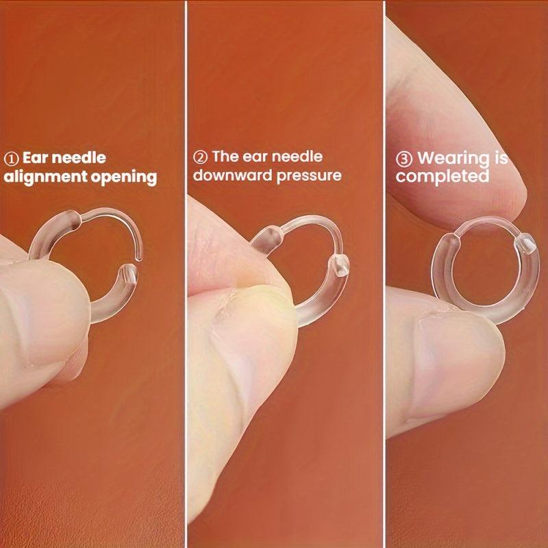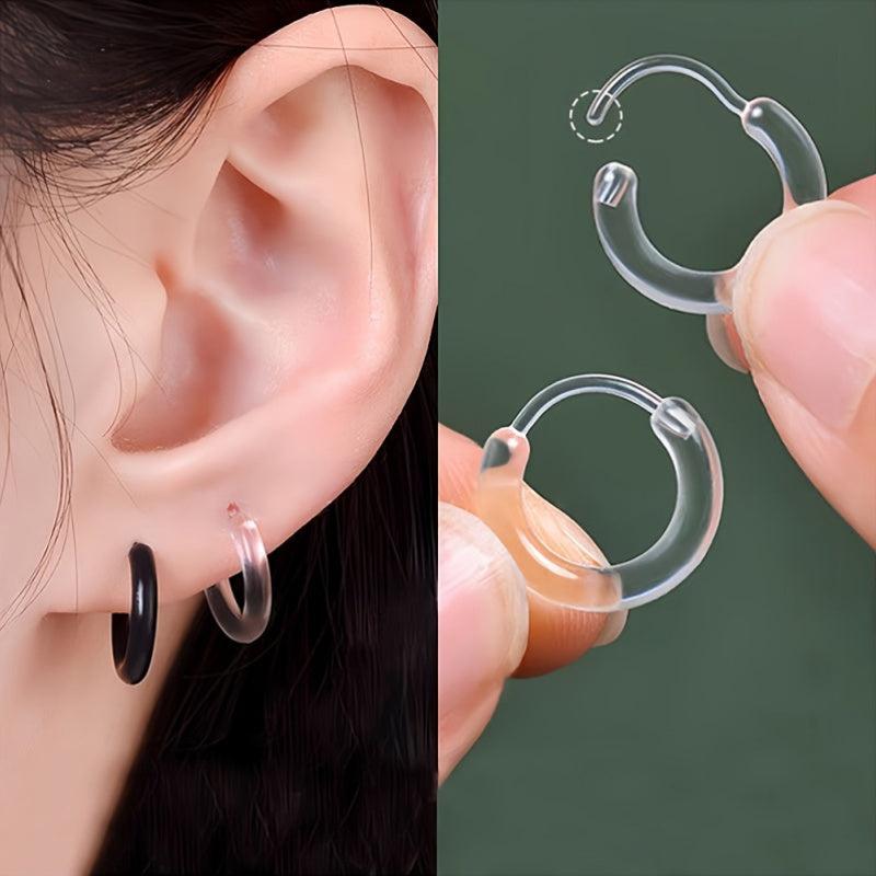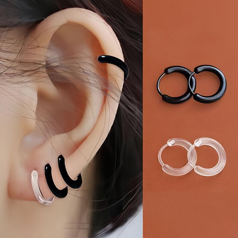 Resin Hoop Earrings Set of 2 No Piercing Minimalist Invisible Studs