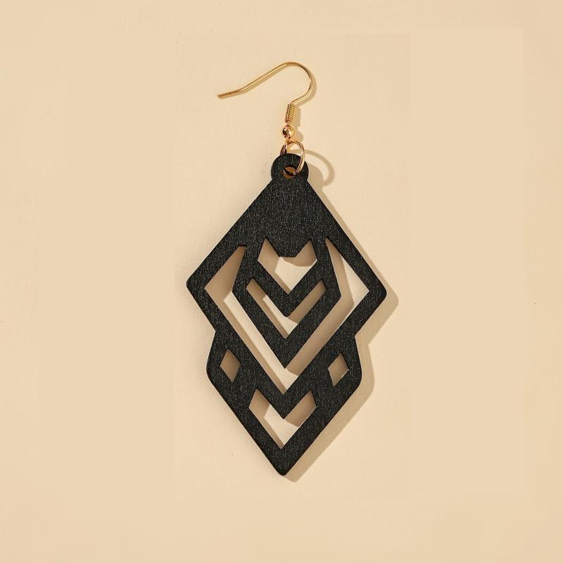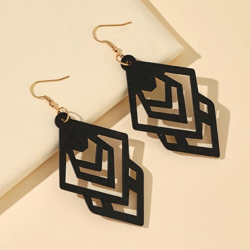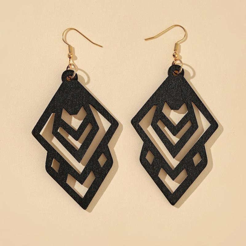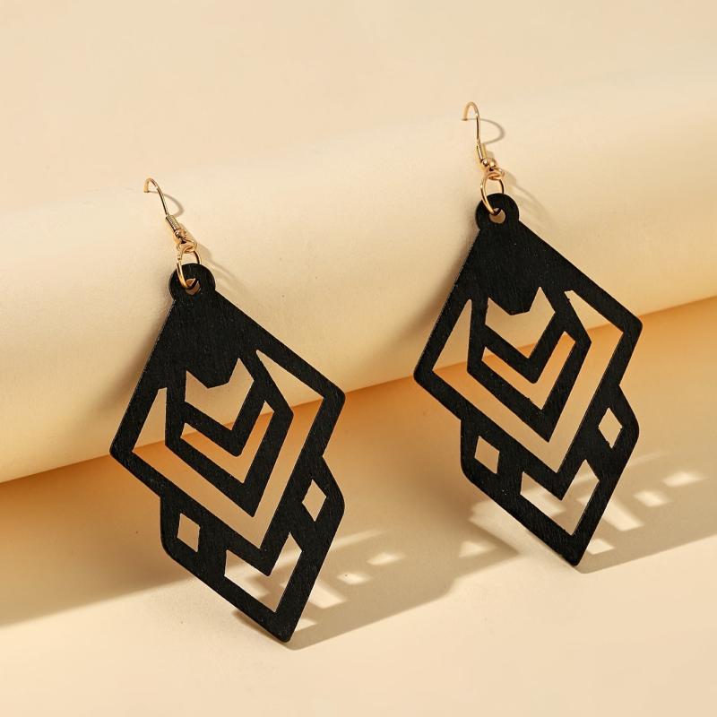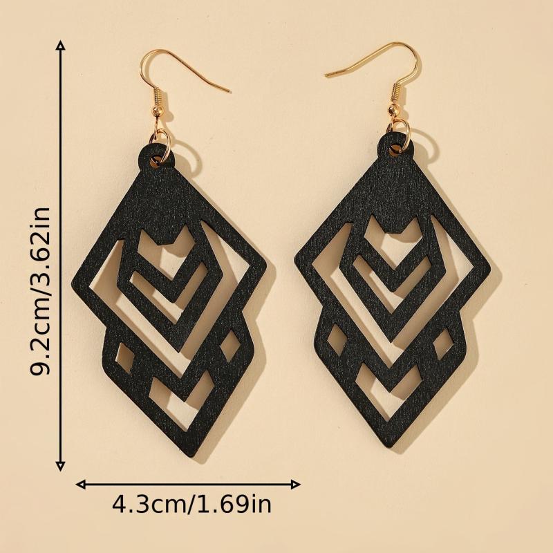 Rhombus Shape Wooden Dangle Earrings Retro Style Fall Winter Ear Ornaments