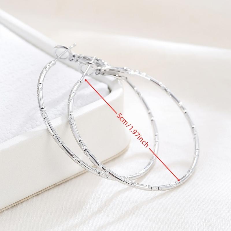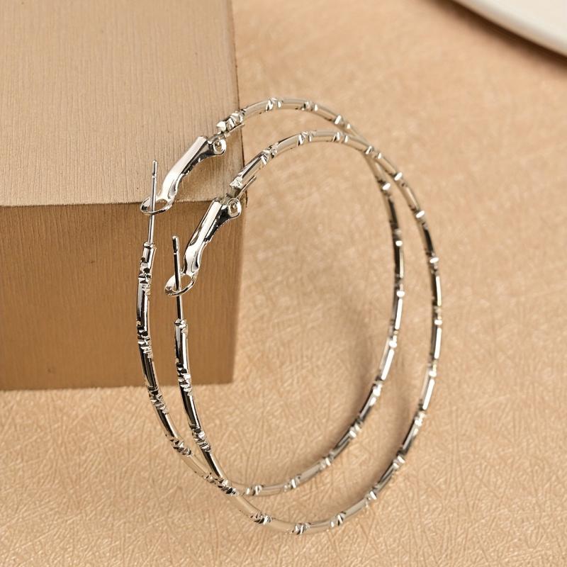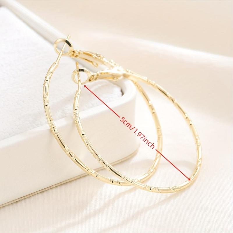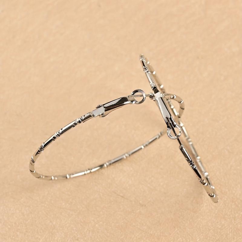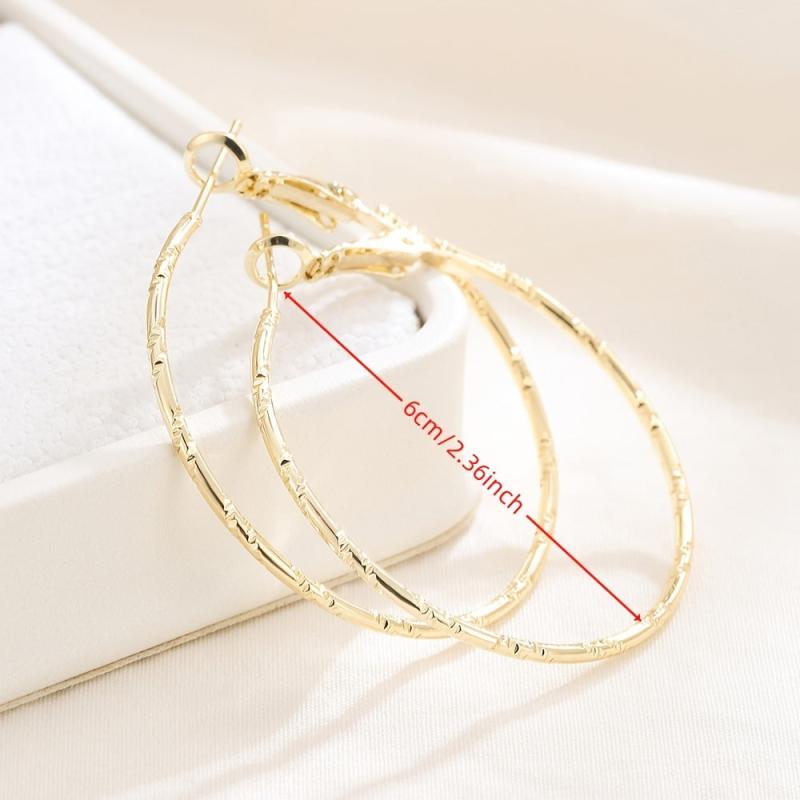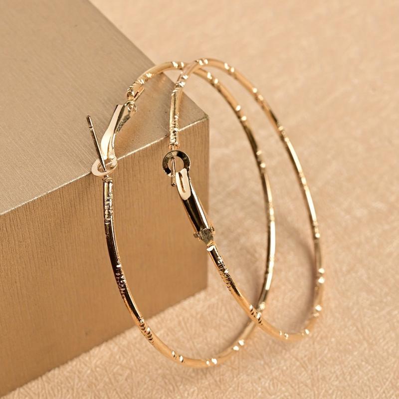 Elegant and stylish embossed earrings designed for women, featuring a sophisticated round shape and substantial size. Crafted in both golden and silvery tones.