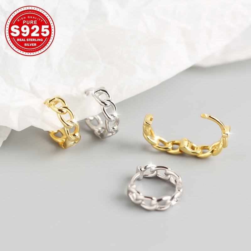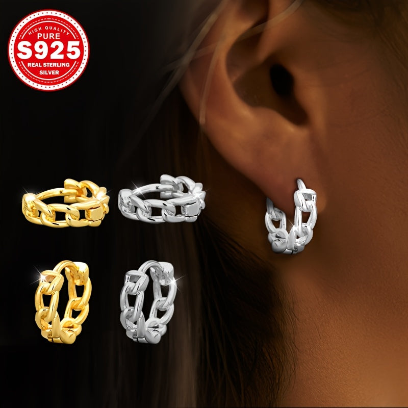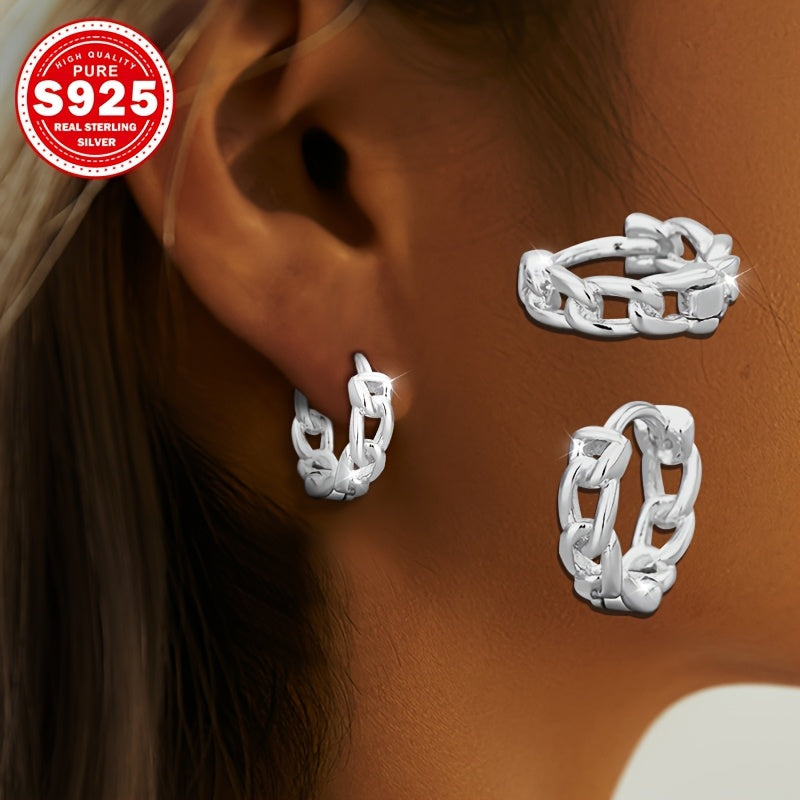 These S925 sterling silver chain link earrings are lightweight at 2.81g, making them perfect for daily wear or special occasions. They are hypoallergenic, ideal for those with sensitive skin. A great gift for women to wear to parties.