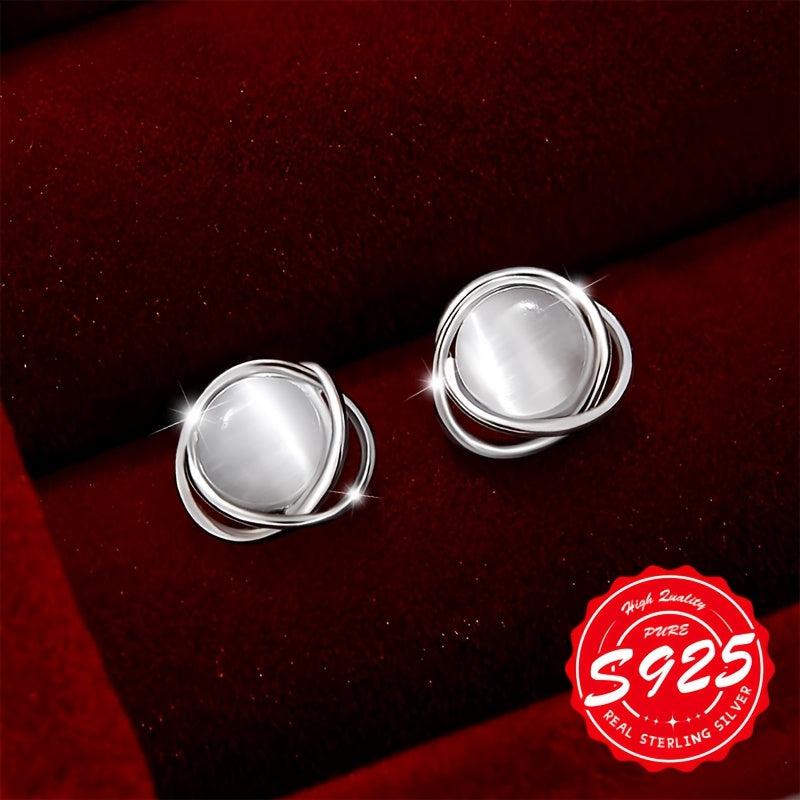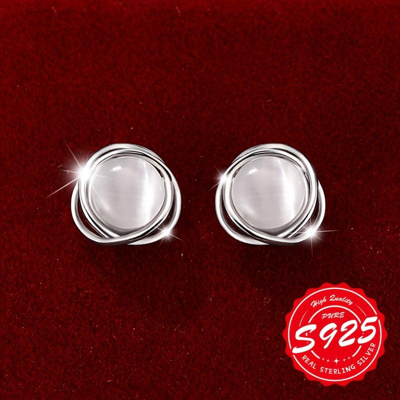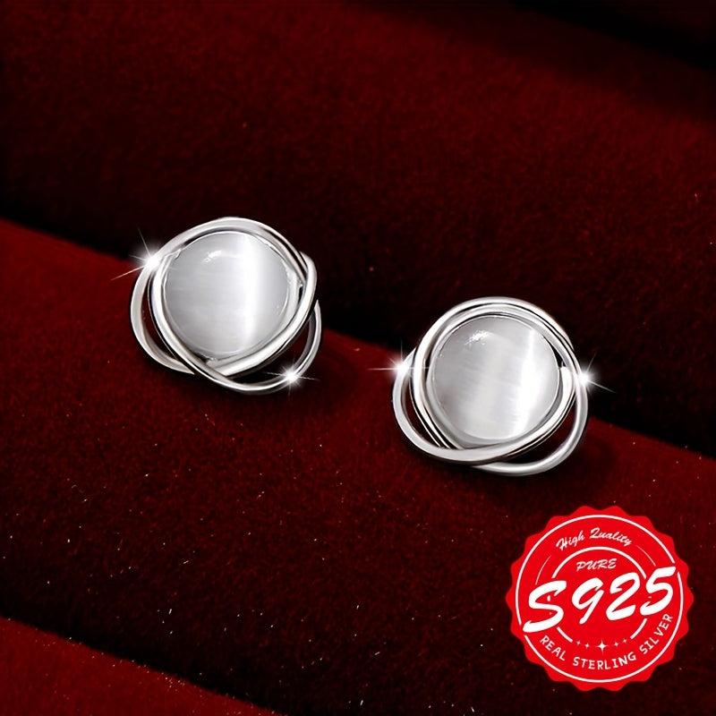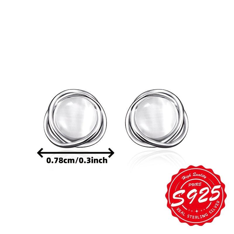 S925 Cross Hoop Earrings with Faux Cat Eye Stone