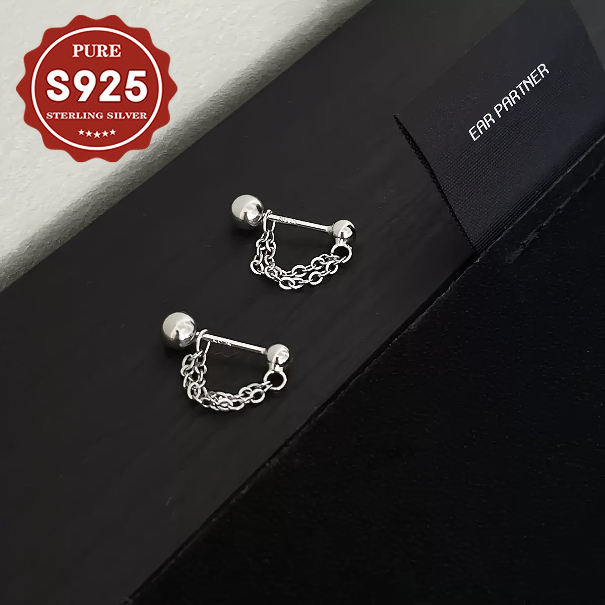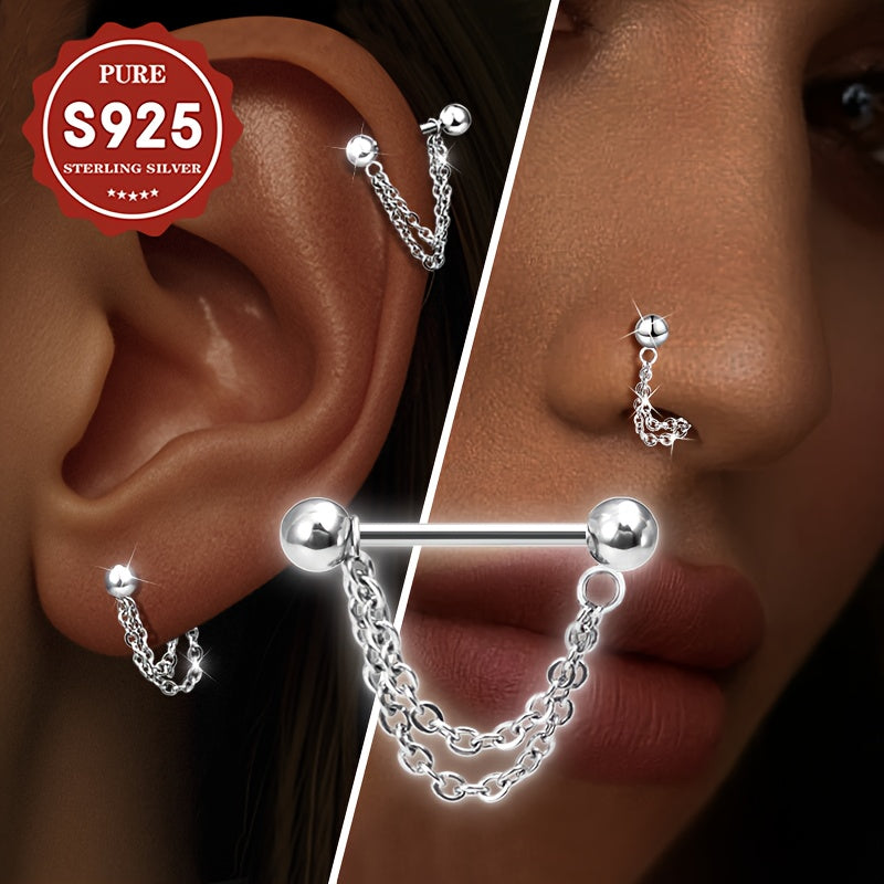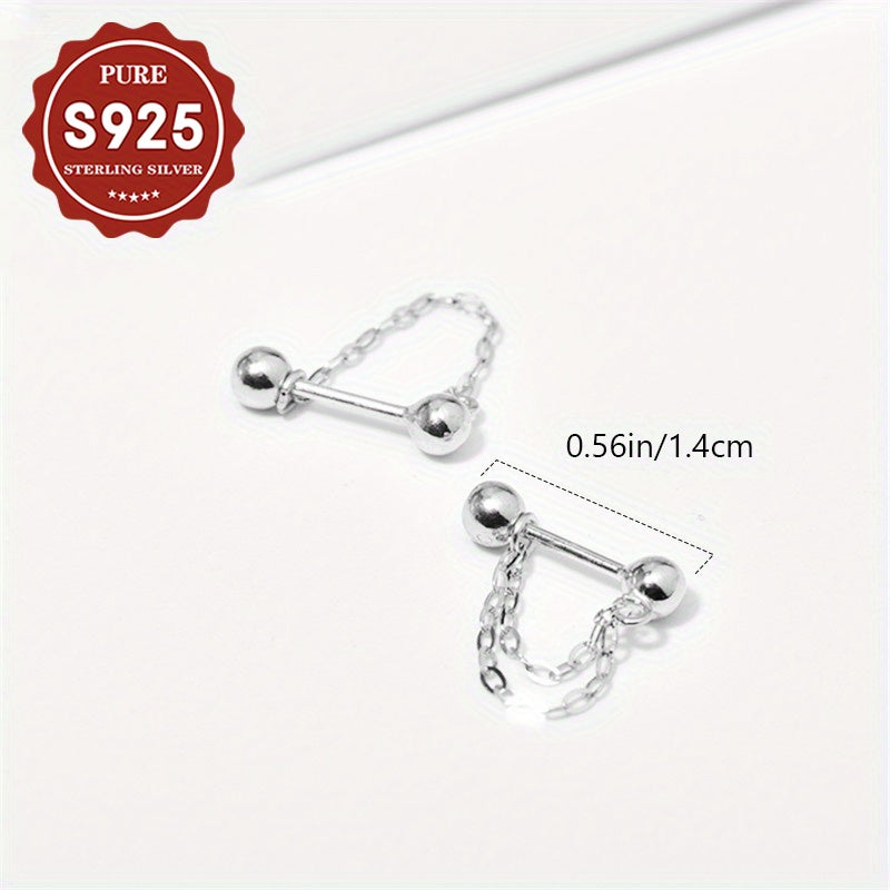 Elegant S925 silver earrings featuring round bead chain studs. Perfect for daily wear or gifting, suitable for all skin types. Hypoallergenic design ensures comfort and style.
