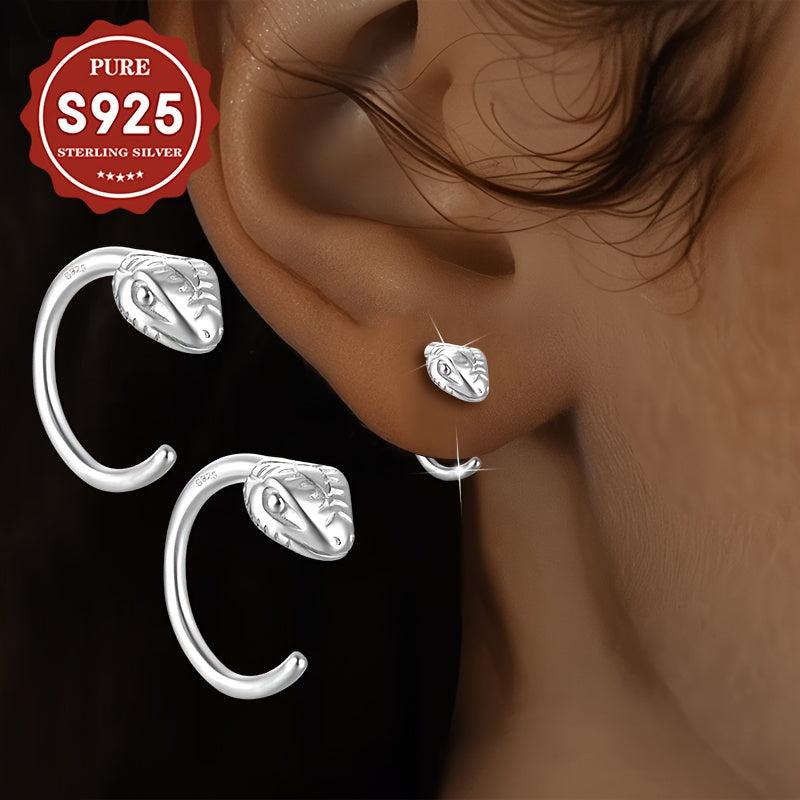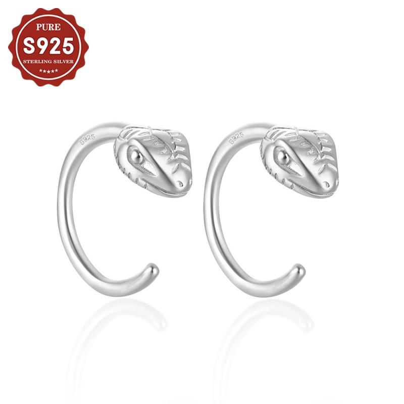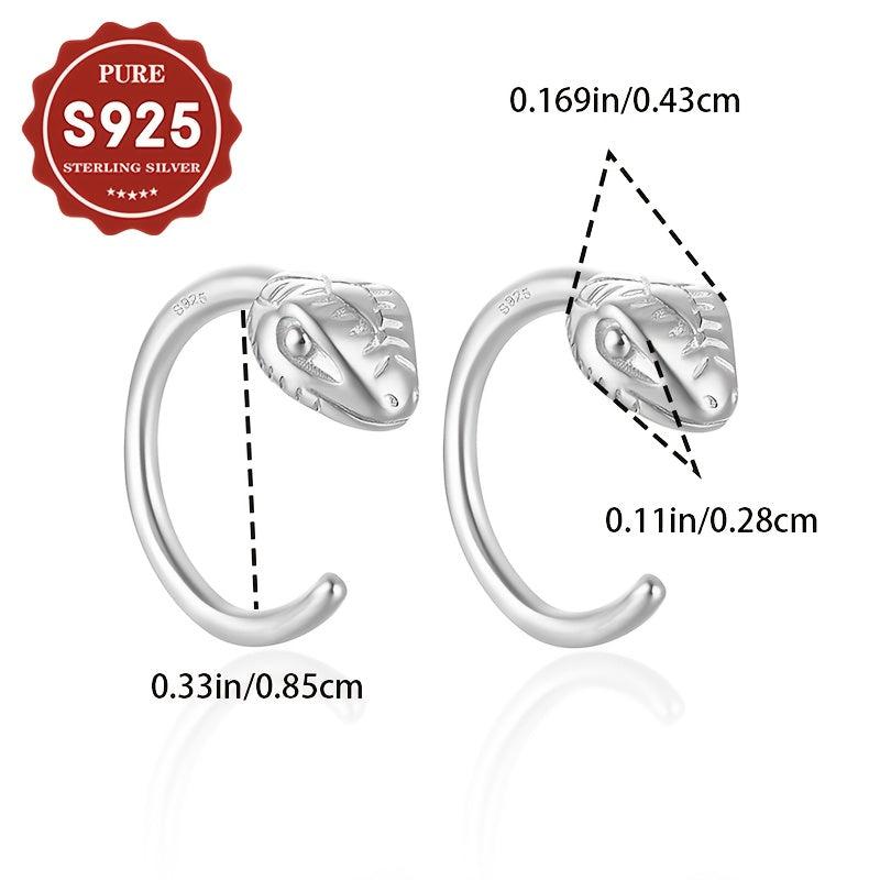 These S925 silver hoop earrings feature a unique snake design, perfect for daily wear or as a gift. They are suitable for all women and are low allergy.