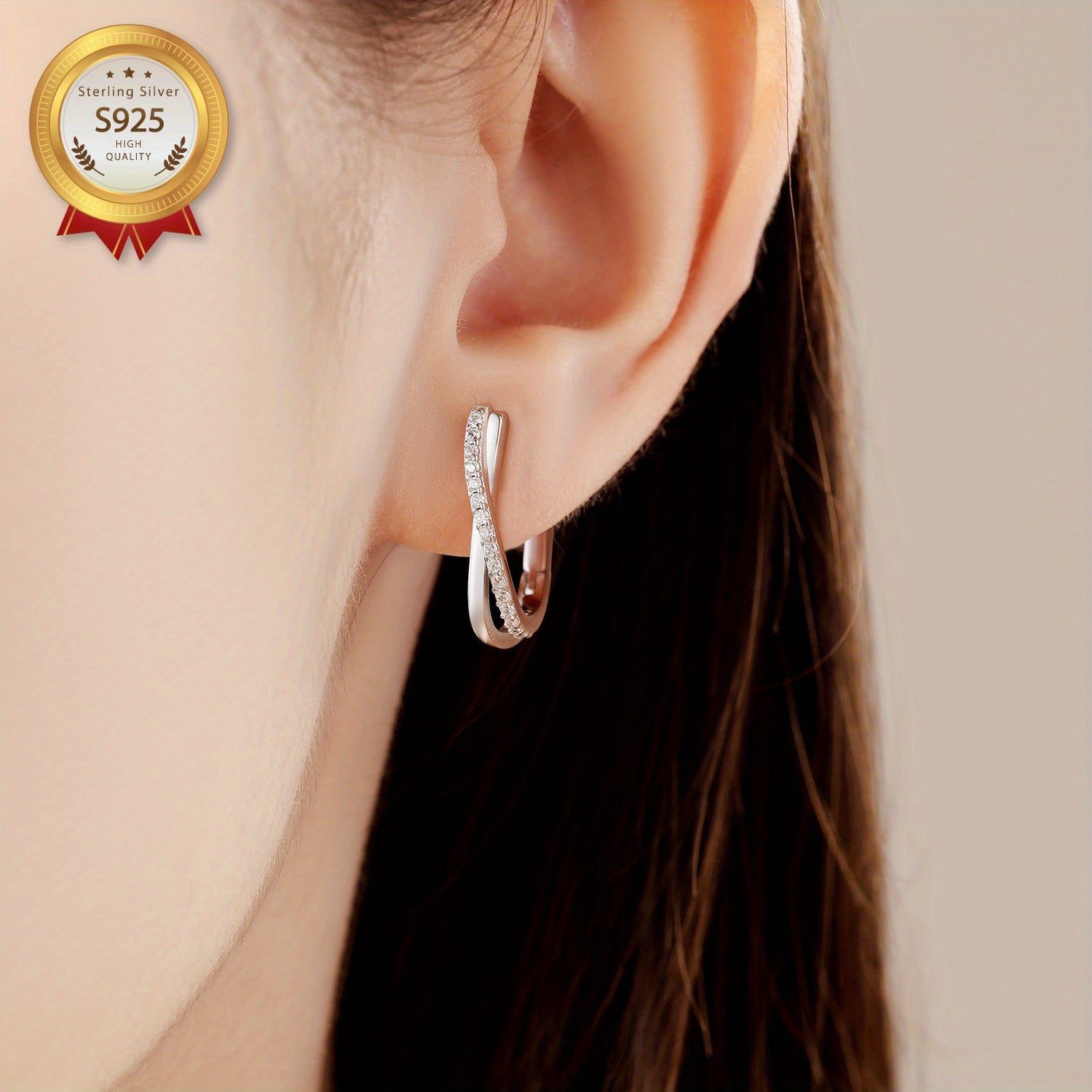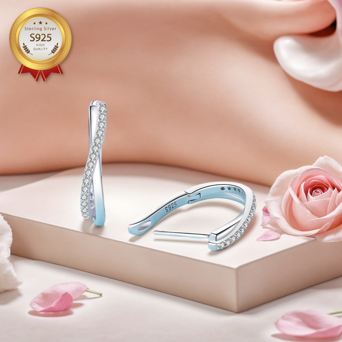Add a touch of elegance to your outfit with these stylish S925 silver earrings featuring twisted line design and stones.