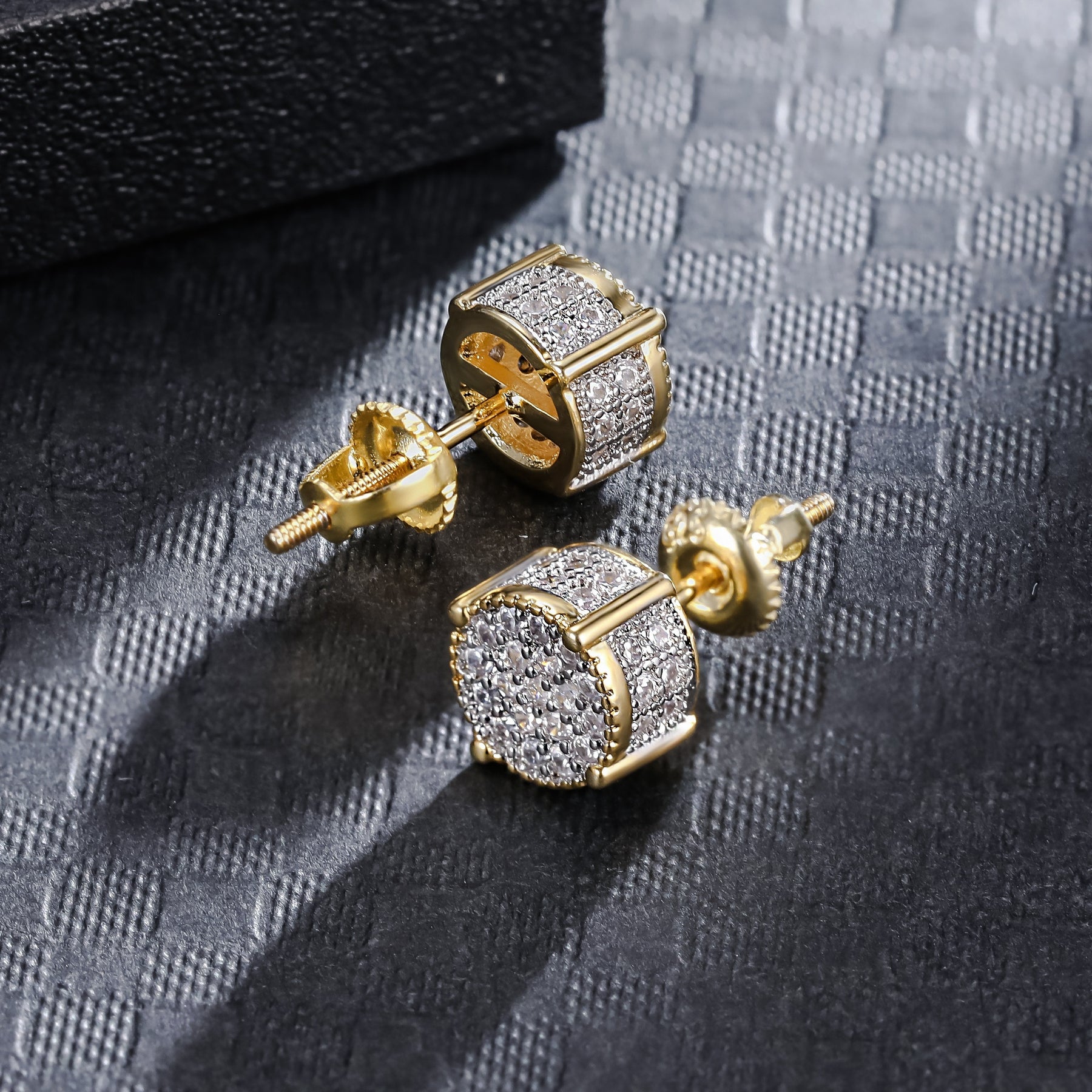 Add a touch of elegance to your look with these stunning round earrings. Made of S925 sterling silver with 18K golden plating and synthetic zirconia, these earrings are perfect for daily wear or special occasions like Christmas.