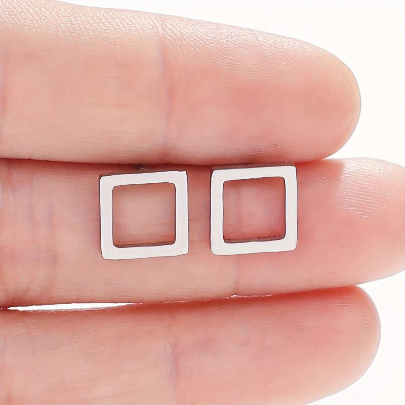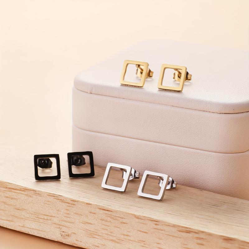Elevate your style with this set of square stud earrings made from stainless steel. These hypoallergenic earrings are perfect for daily wear and can complement any outfit.