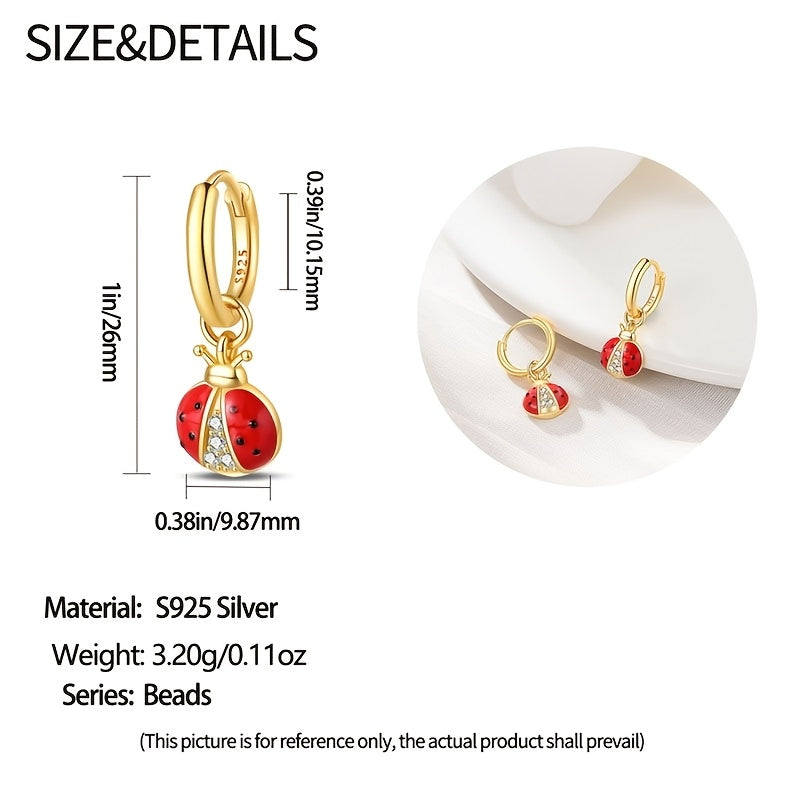 This S925 sterling silver ladybug earring is a perfect accessory for women's jewelry DIY projects. It is lightweight with a silver weight of 3 grams, making it comfortable to wear.