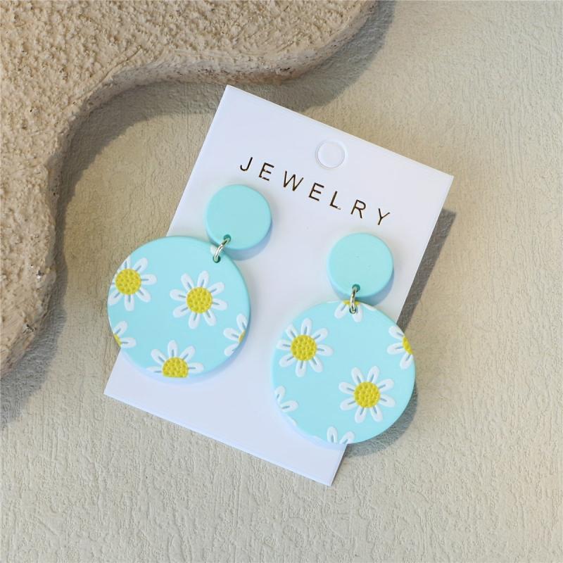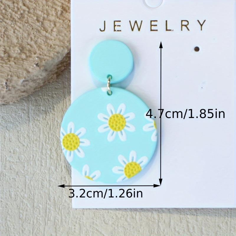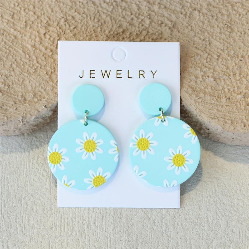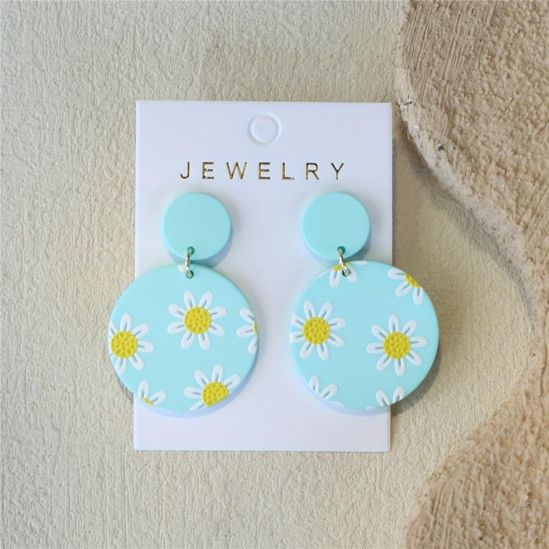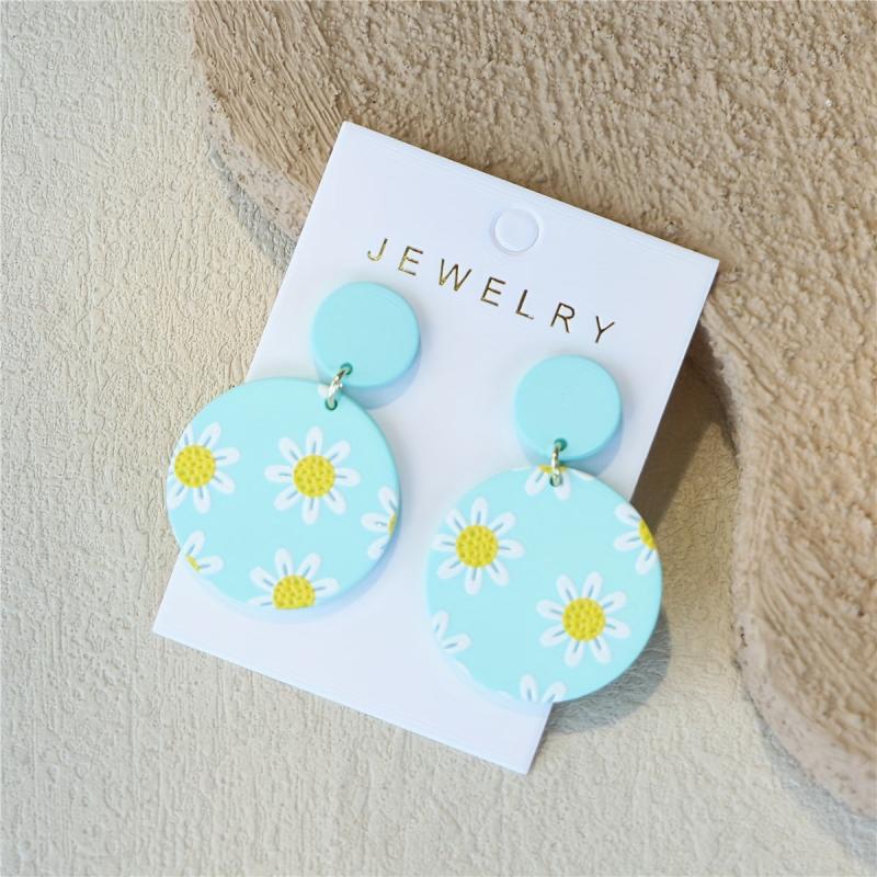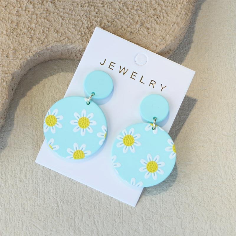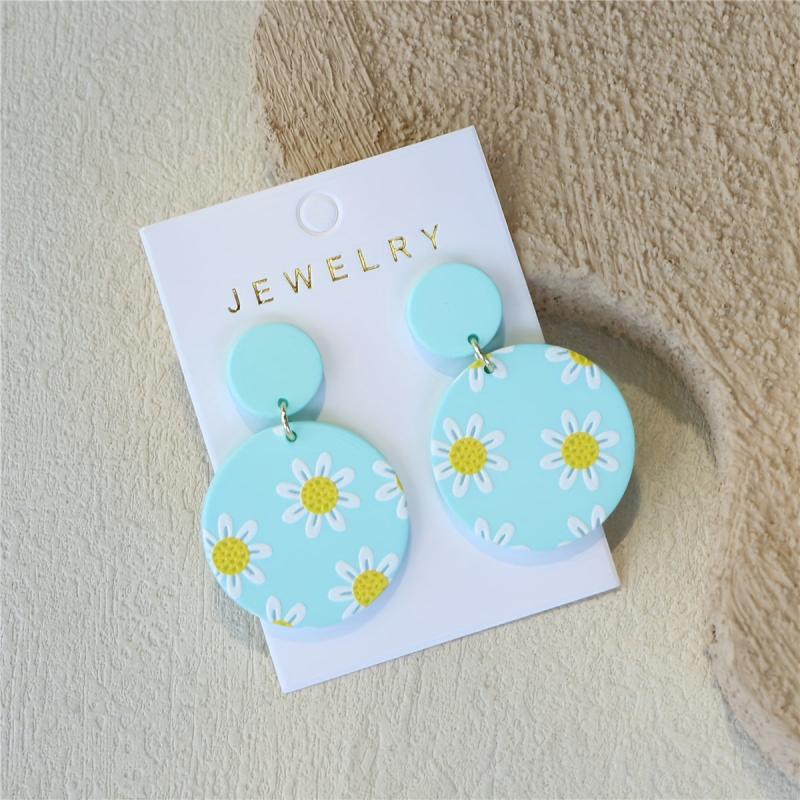 These adorable sunflower and daisy print acrylic earrings are the perfect playful addition to your casual attire. The light clay texture adds a unique touch to this fun accessory.