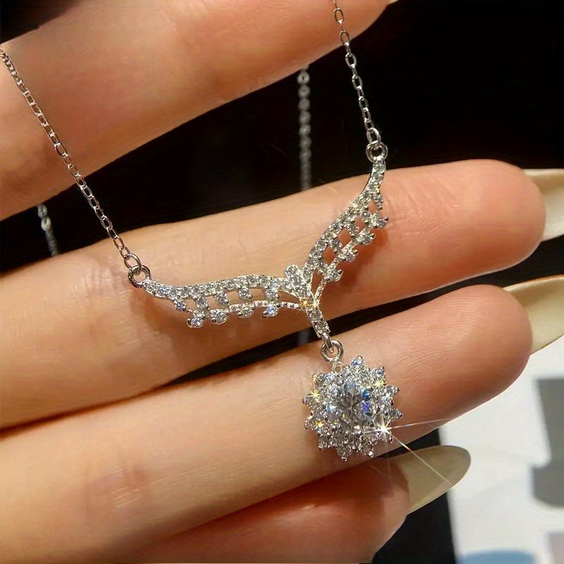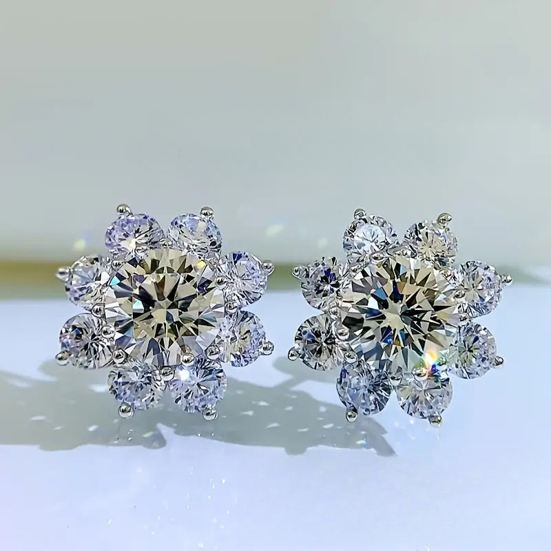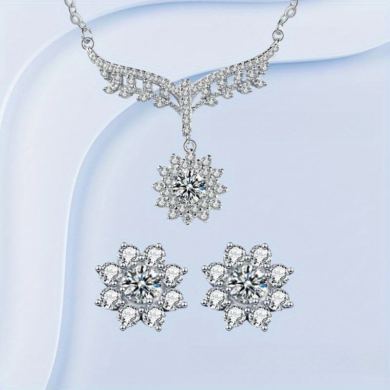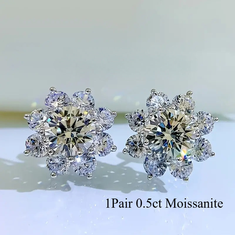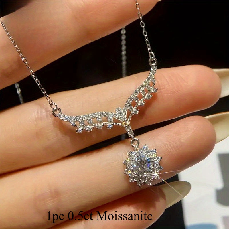 Enhance your look with this stunning Sunflower Moissanite jewelry set featuring a pair of 0.5ct stud earrings and a matching necklace. Perfect for adding a touch of elegance to any outfit.