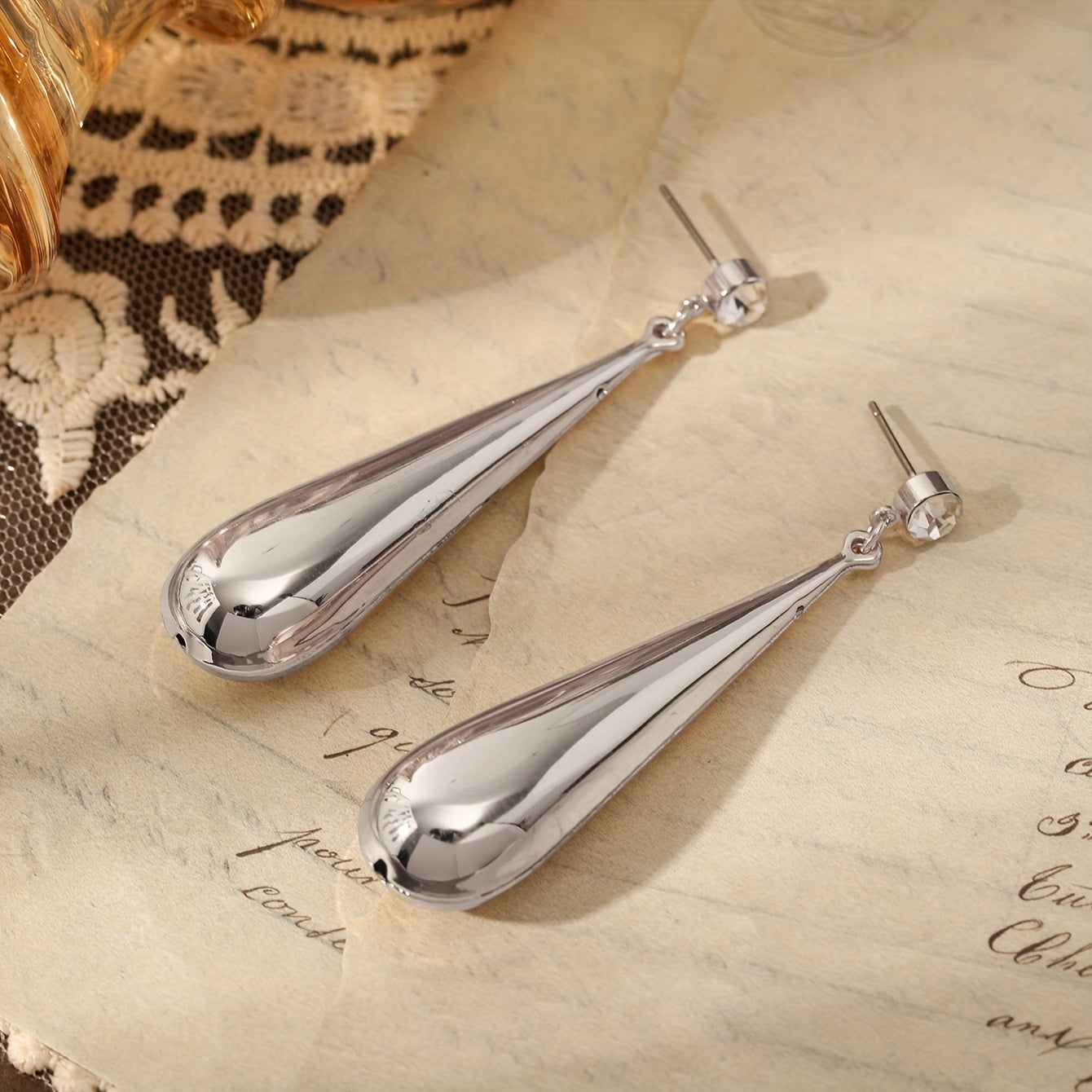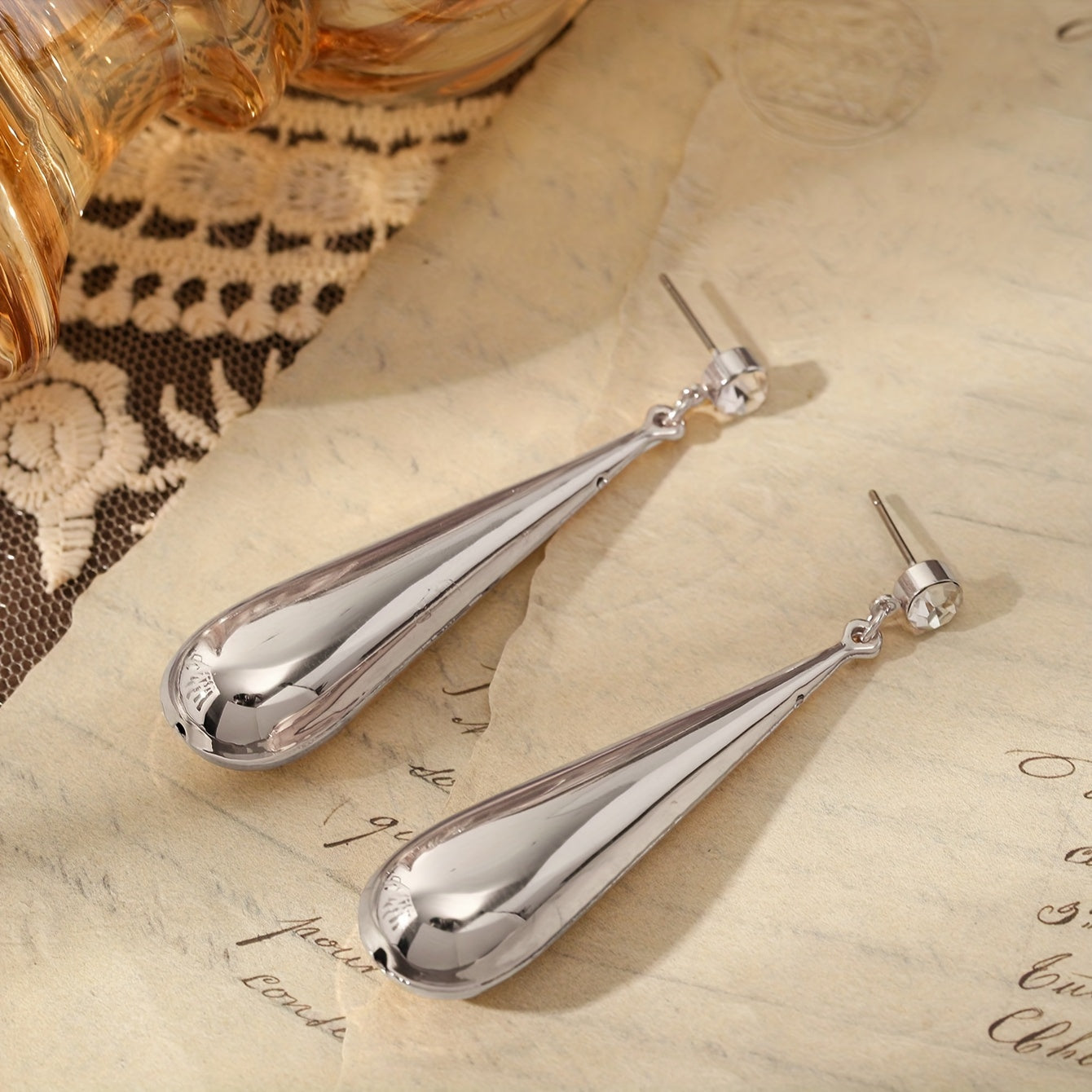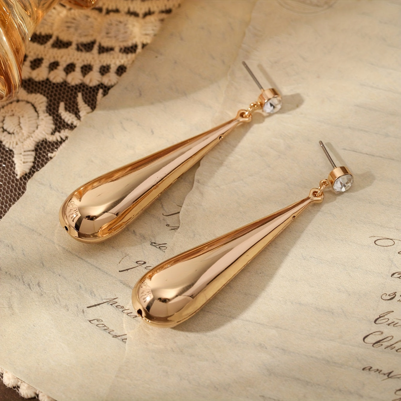 • Plated water drop earrings with rhinestones
