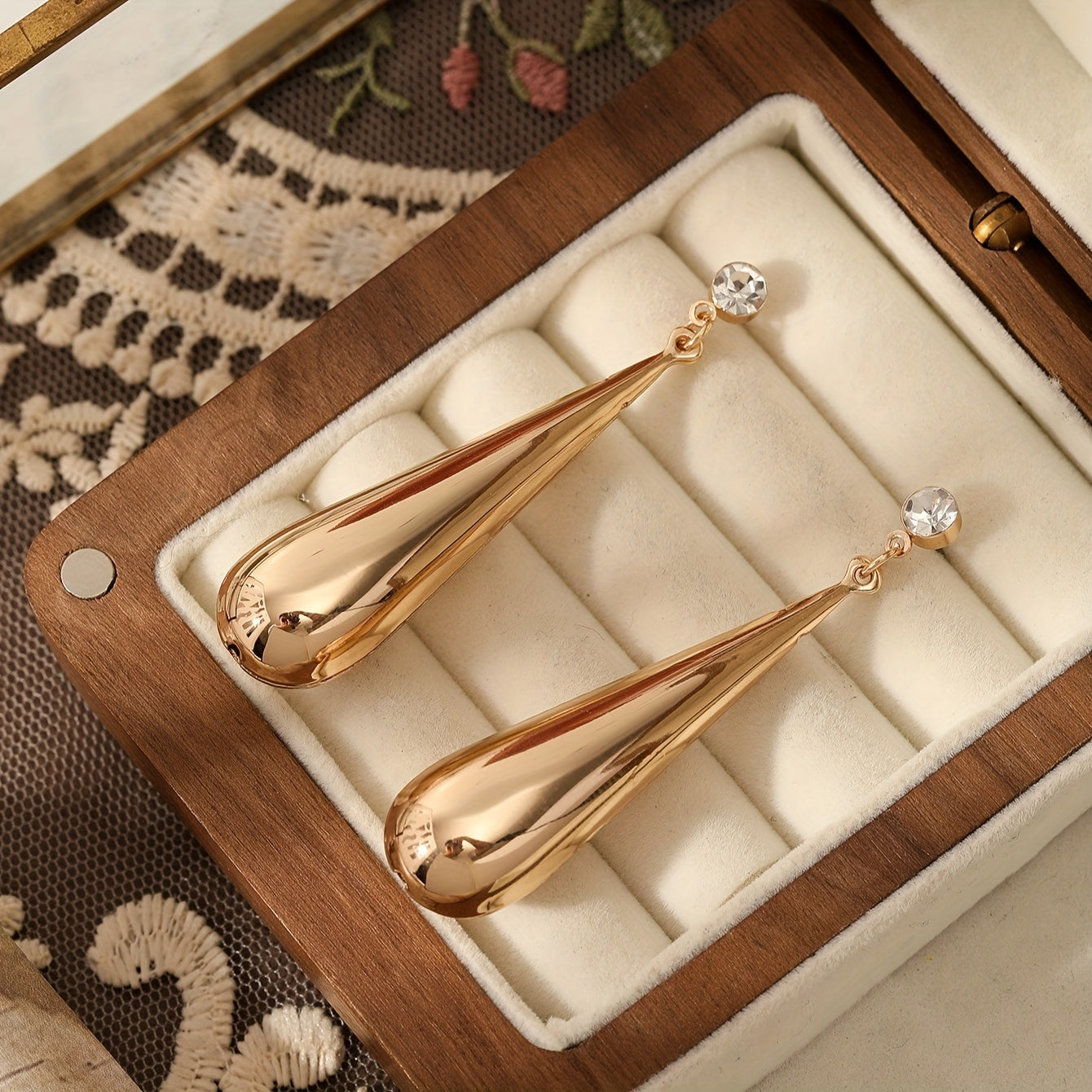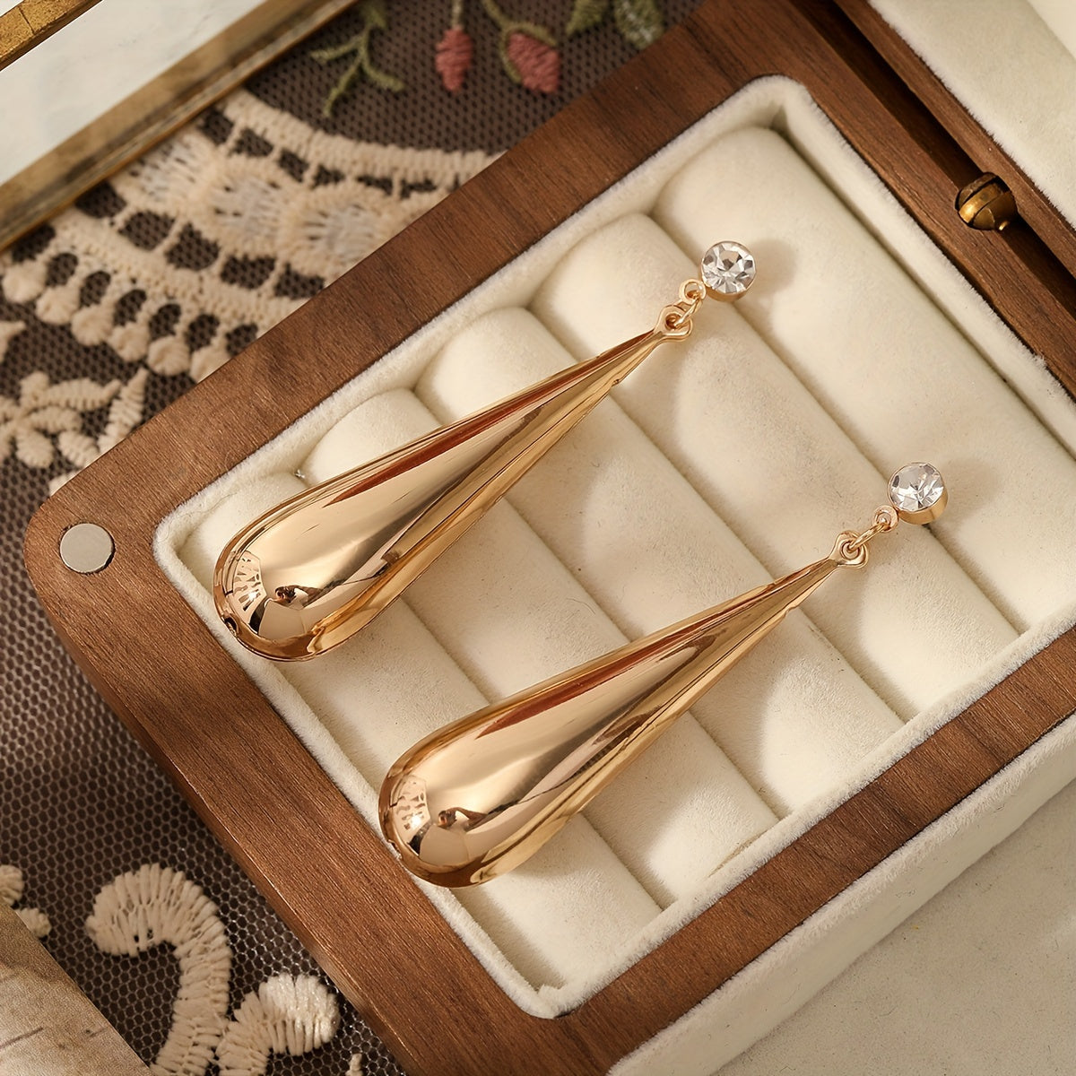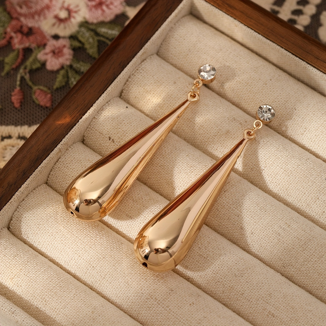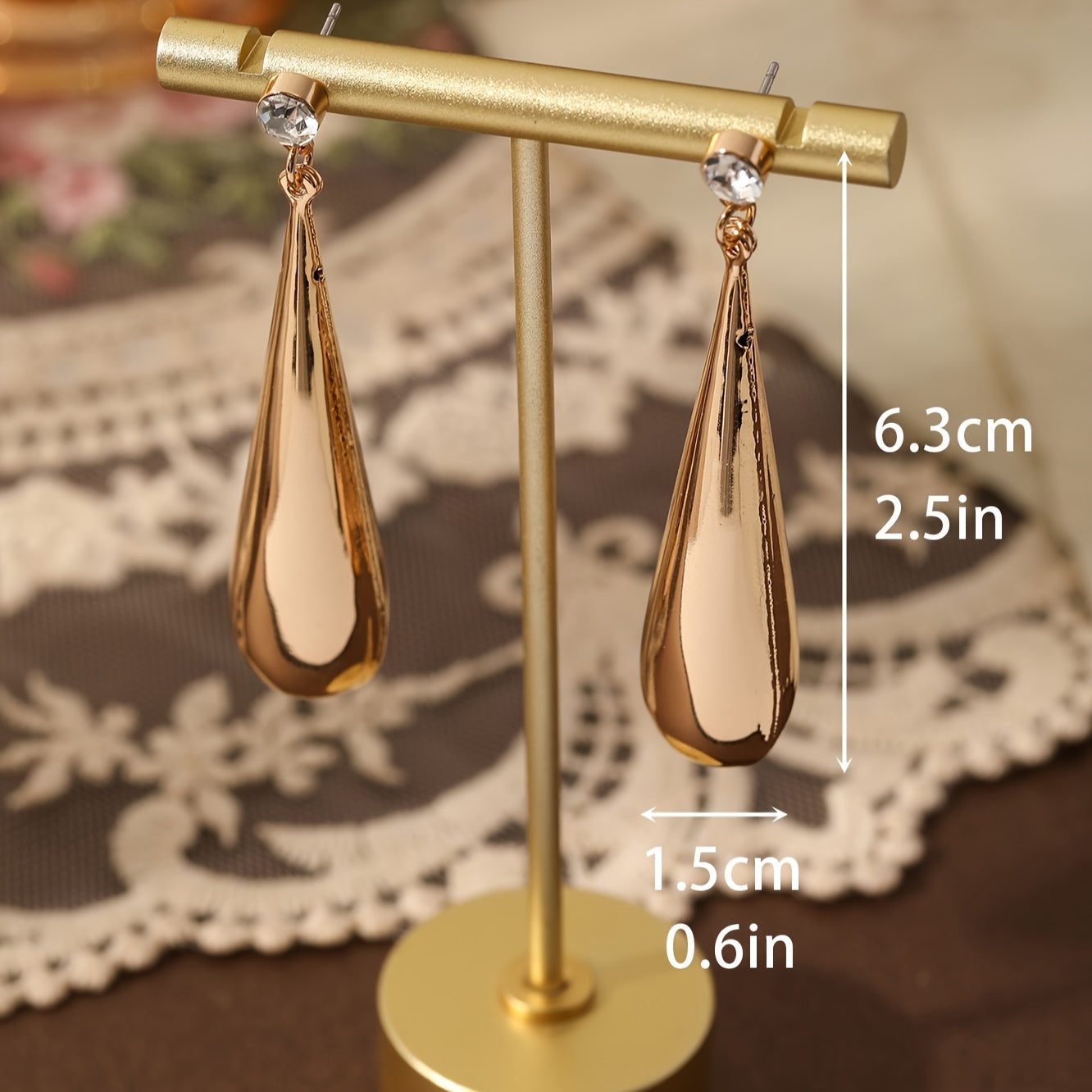 • Plated water drop earrings with rhinestones