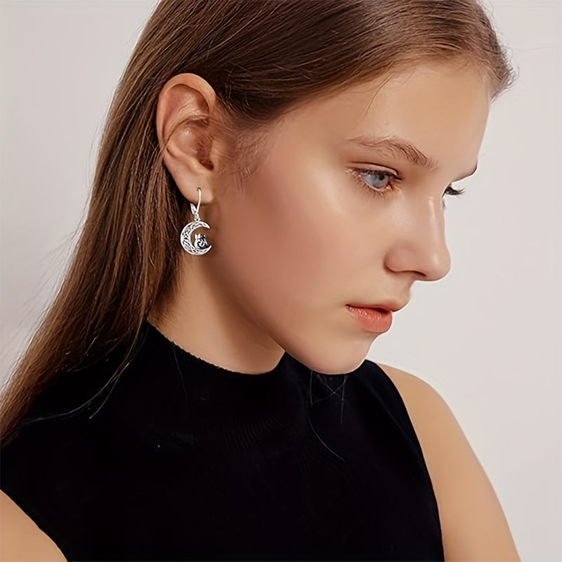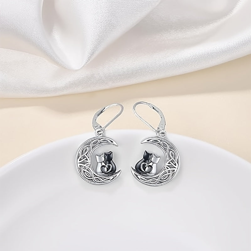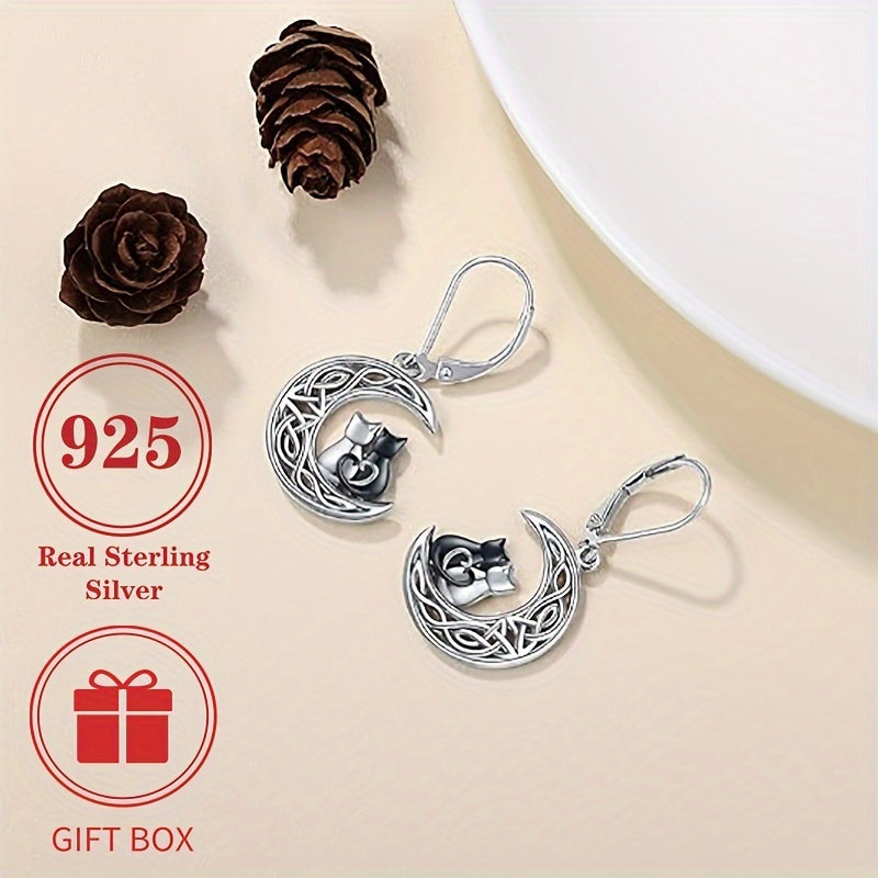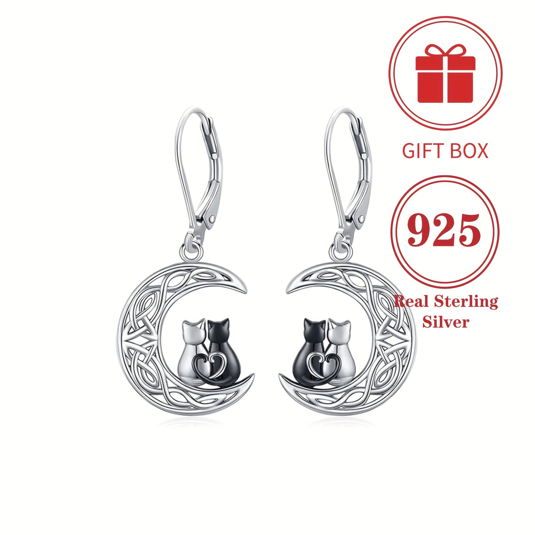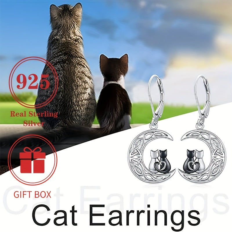 These drop earrings are crafted with 925 sterling silver. They feature a cat design and are lightweight, making them perfect for all seasons. The earrings are a great gift option.