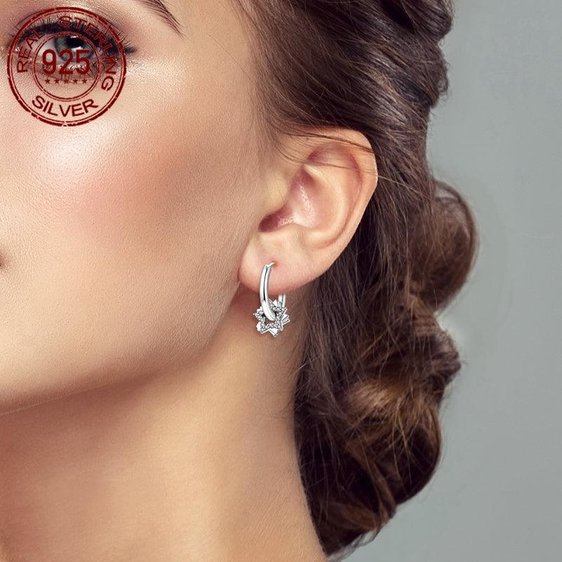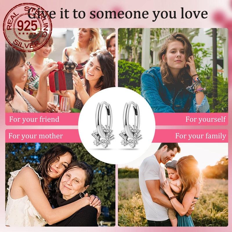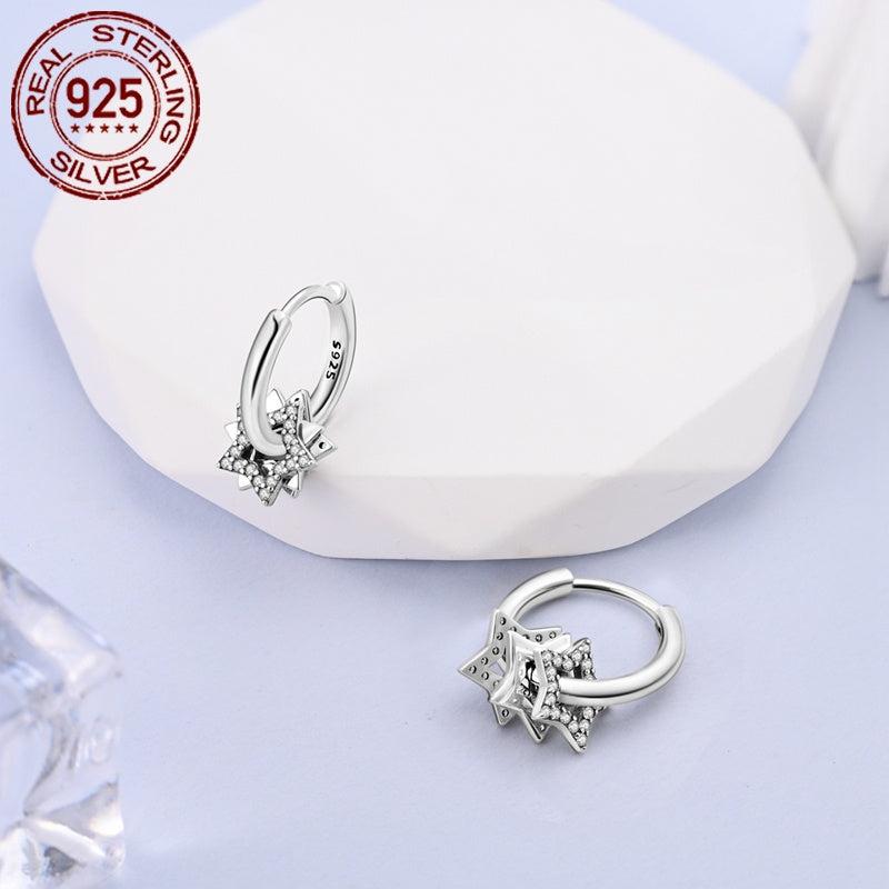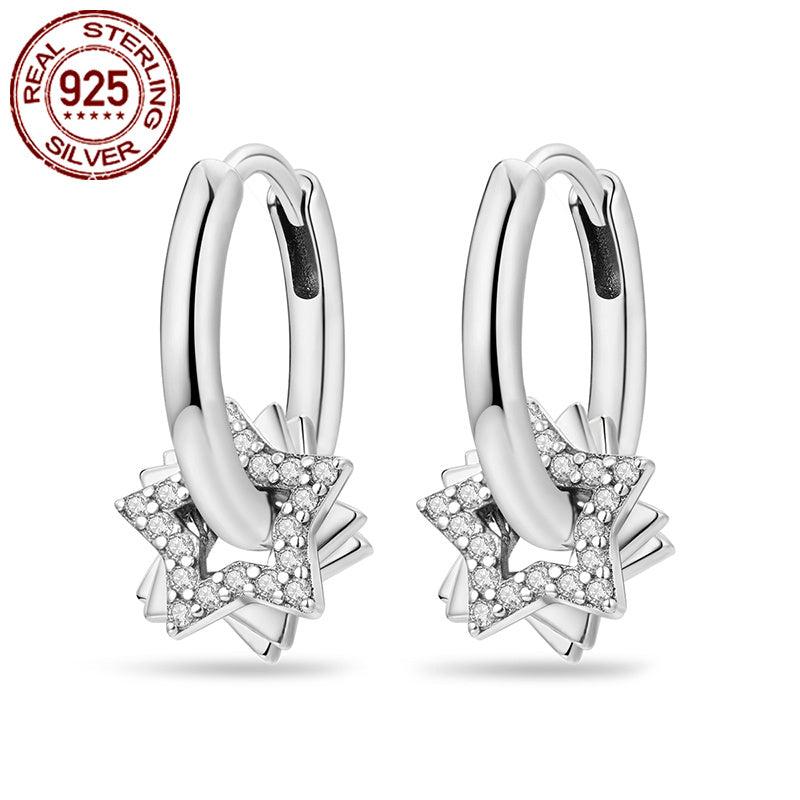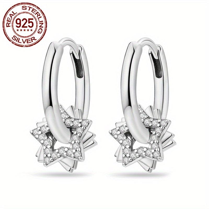 Add a touch of sparkle to your party look with these chic hoop earrings featuring a dazzling star charm. Crafted from 925 sterling silver with cubic zirconia accents, these earrings are perfect for any occasion.