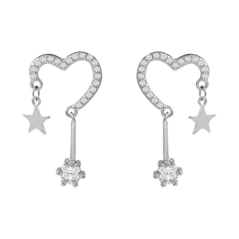 Women's Open Heart Star And Halo Drop Earrings With Zirconia