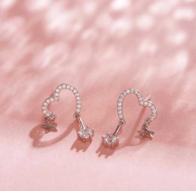 Bling Queen is an affordable fashion jewellery brand with various product types like bracelets, necklaces, earrings, rings, etc. suitable for women, men, and kids.The earrings feature a unique design combining two iconic symbols, an open heart, and a star, crafted intricately to create a visually stunning piece of jewellery. The open heart represents love and affection, while the star symbolizes guidance, inspiration, and dreams. This combination adds a meaningful touch to the earrings, making them not just accessories but also expressions of emotion and aspiration The heart and star motifs are delicately adorned with sparkling zirconia stones, meticulously set by skilled artisans to ensure maximum brilliance and shine.