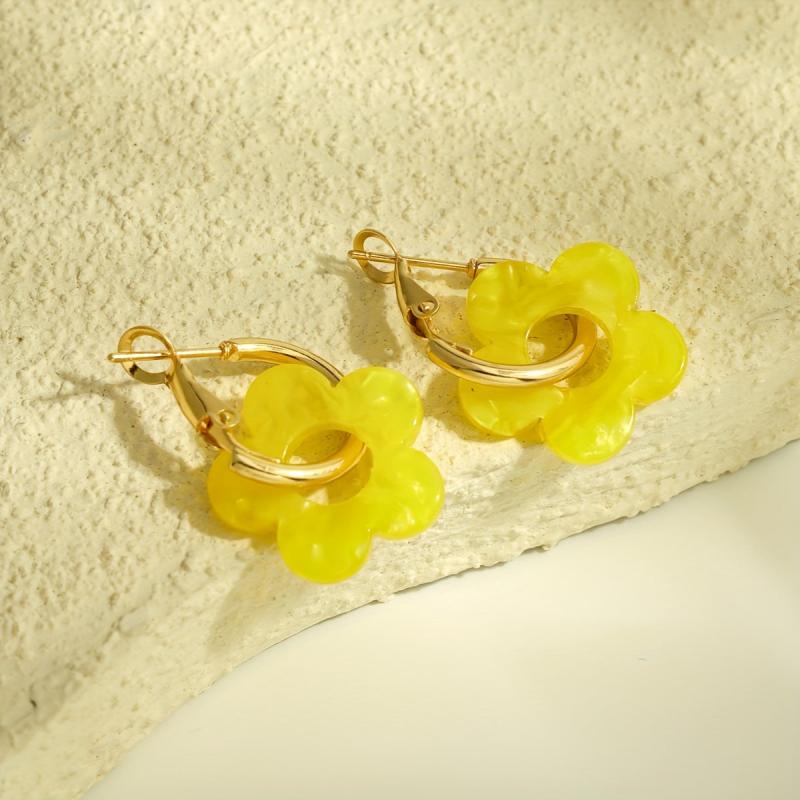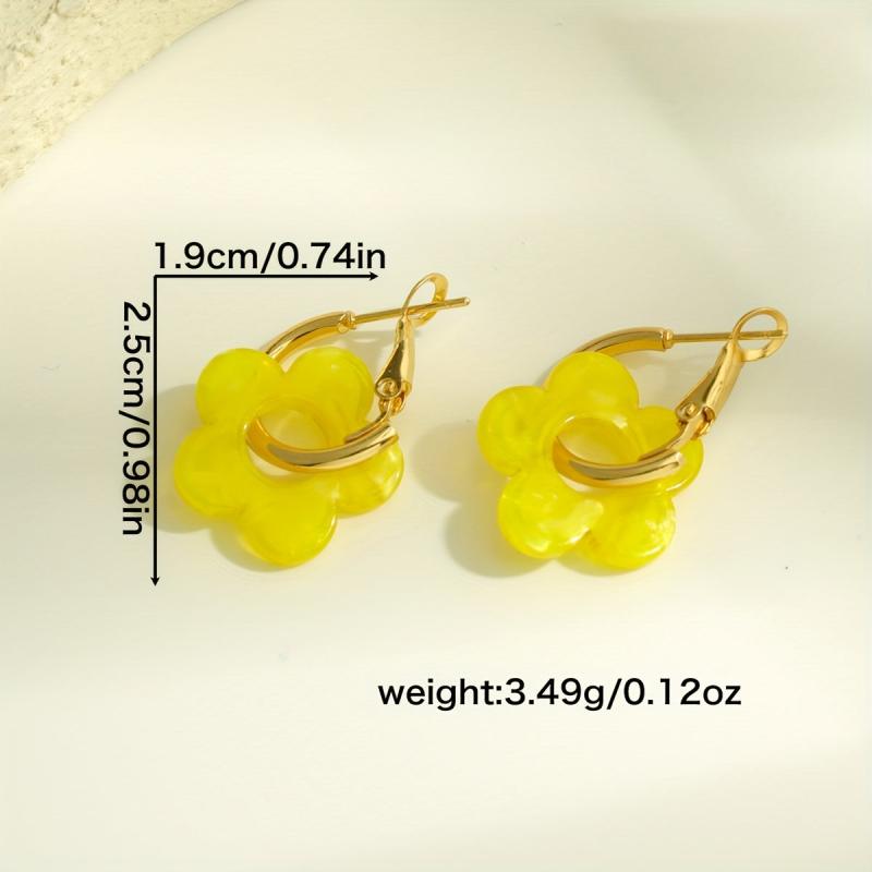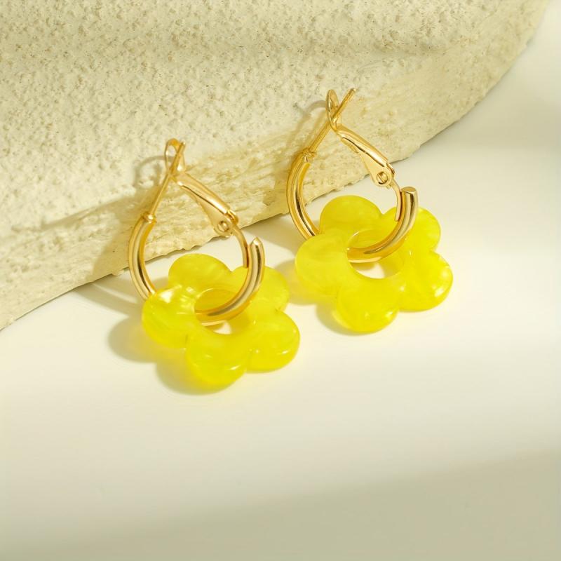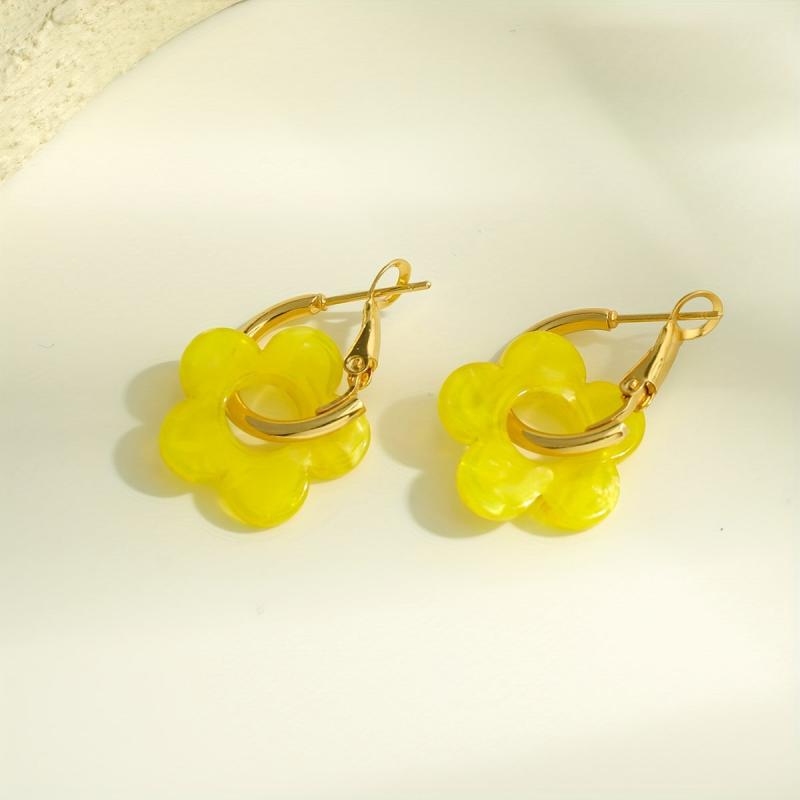 Yellow Acrylic Flower Dangle Earrings for Women