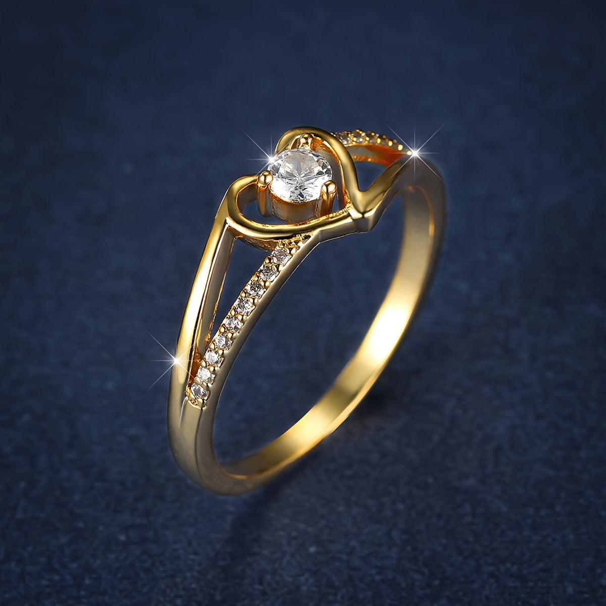 18k Plated Heart Zirconia Promise Ring - Wedding Engagement Band