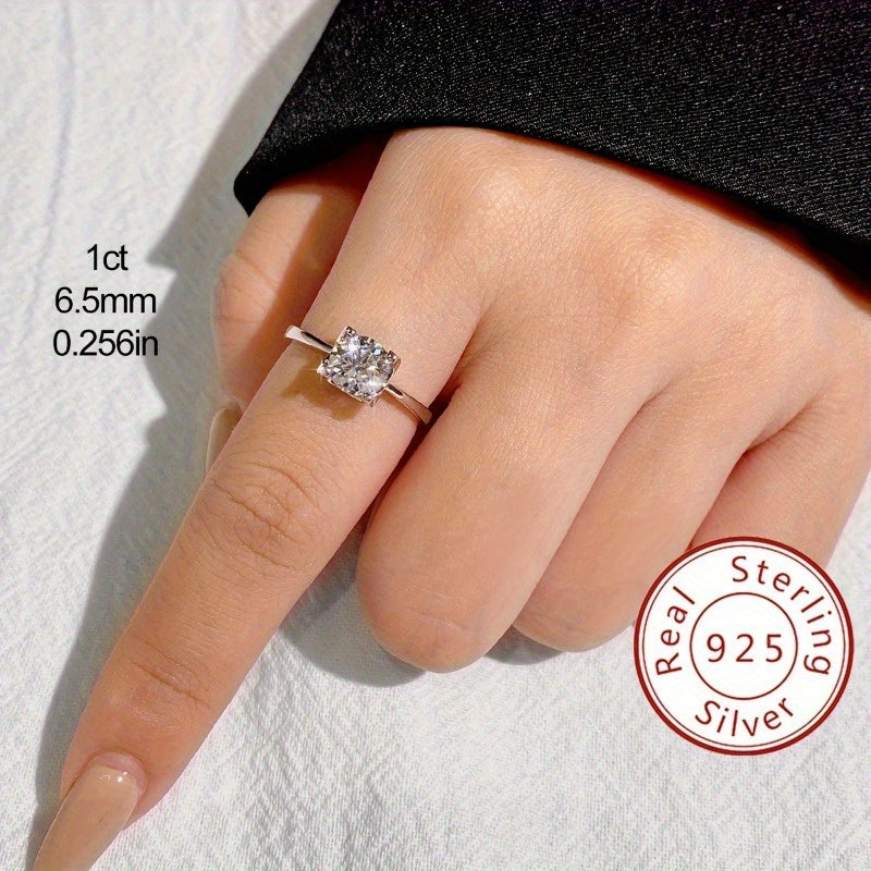 925 Silver 1ct Moissanite Promise Ring Classic Solitaire