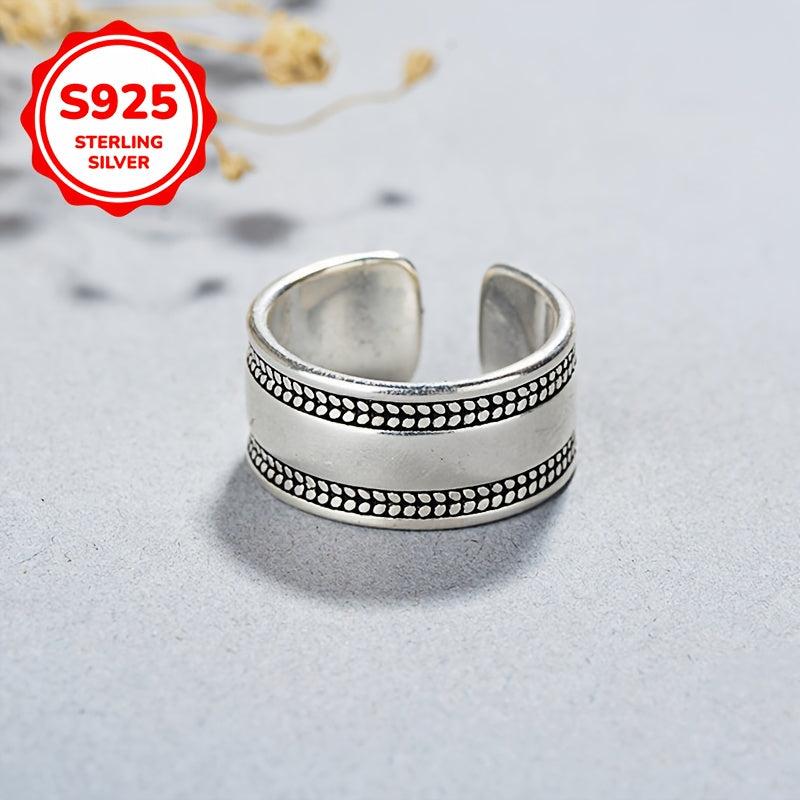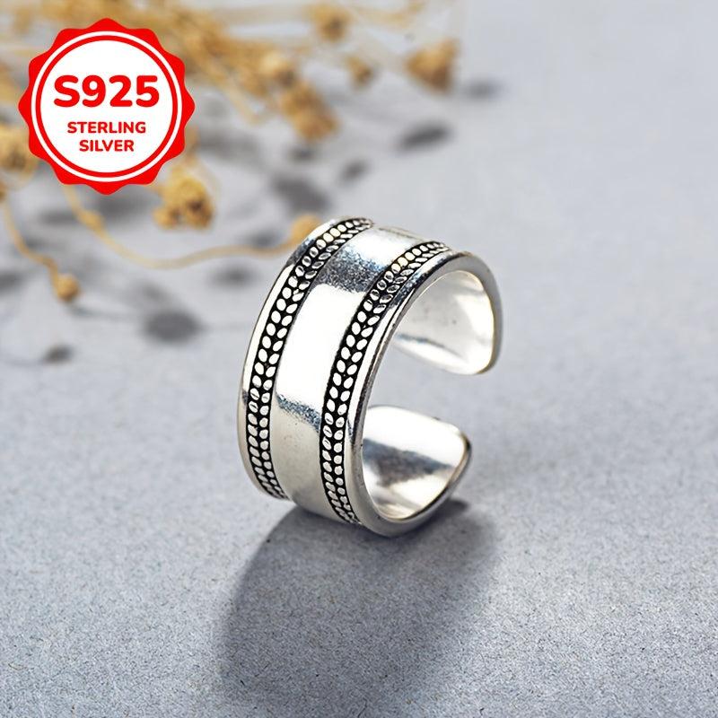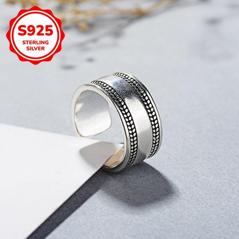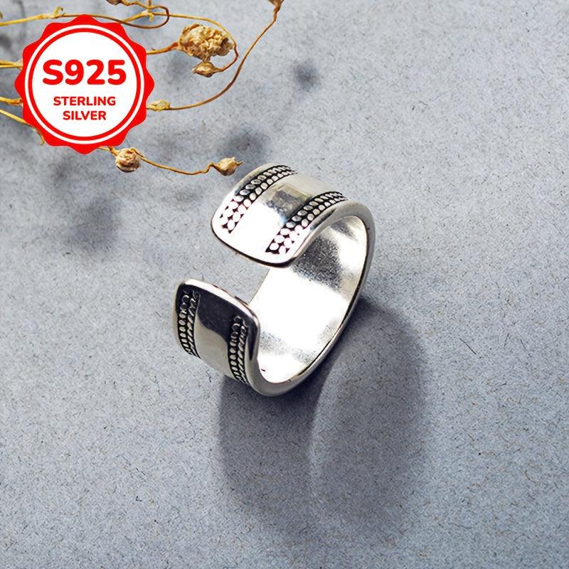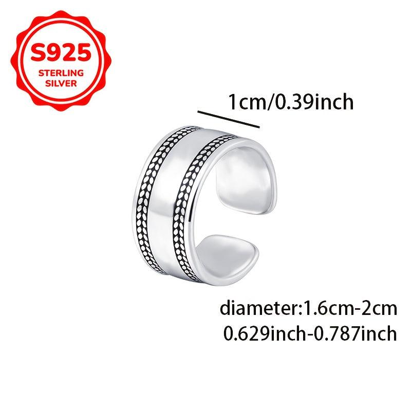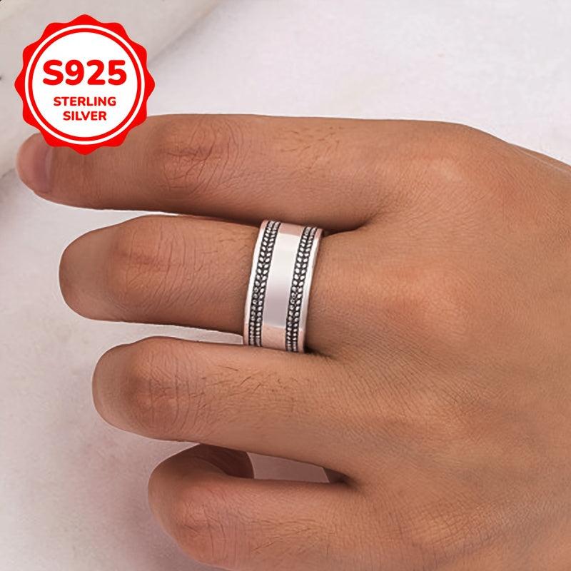 925 Silver 2-Sided Leaf & Glossy Retro Ring Set