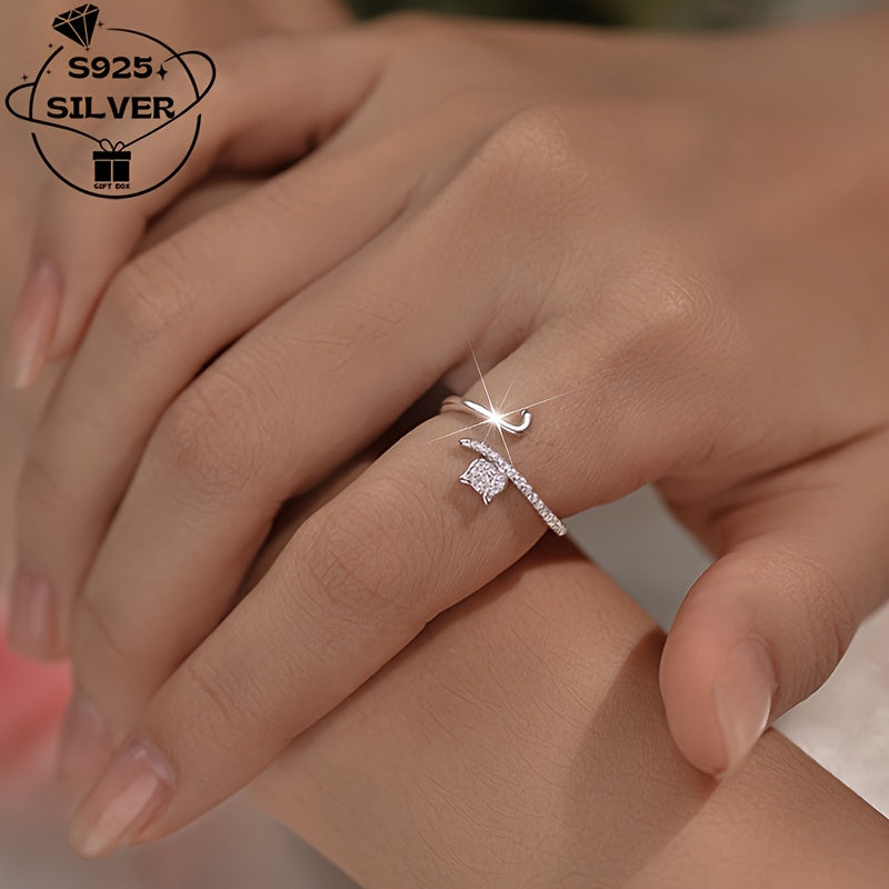 This adjustable ring features a cute cat design with sparkling synthetic zirconia, perfect for daily wear or parties.
