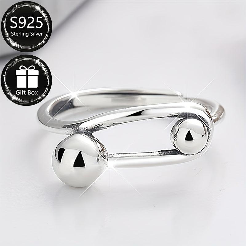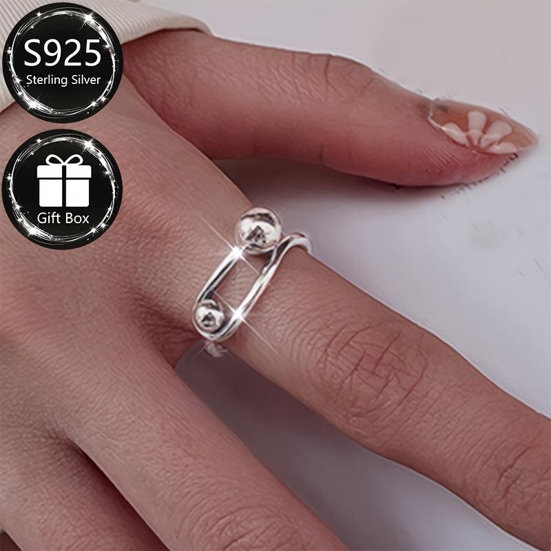 Elegant open ring crafted from 925 sterling silver featuring an irregular geometric hollow round ball design.